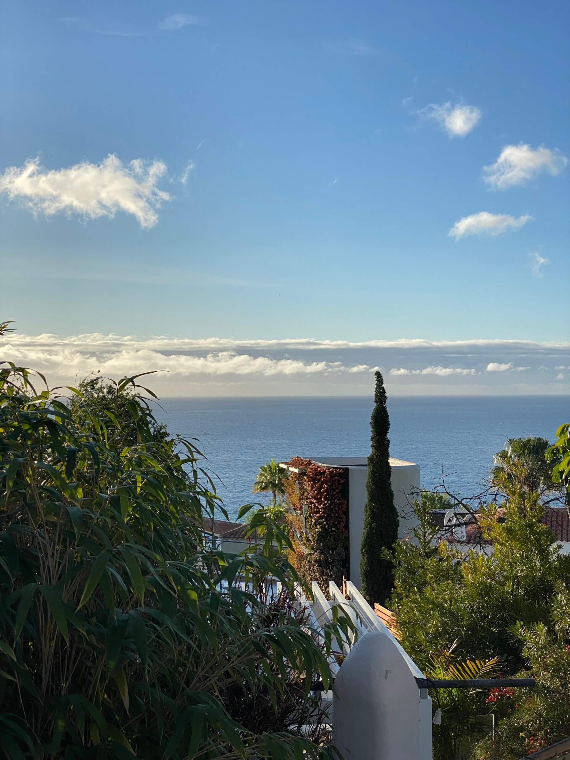 Das Wetter ist herrlich hier. Schon um 8:00 Uhr morgens kann man auf der Terrasse mit Blick aufs Meer frühstücken.