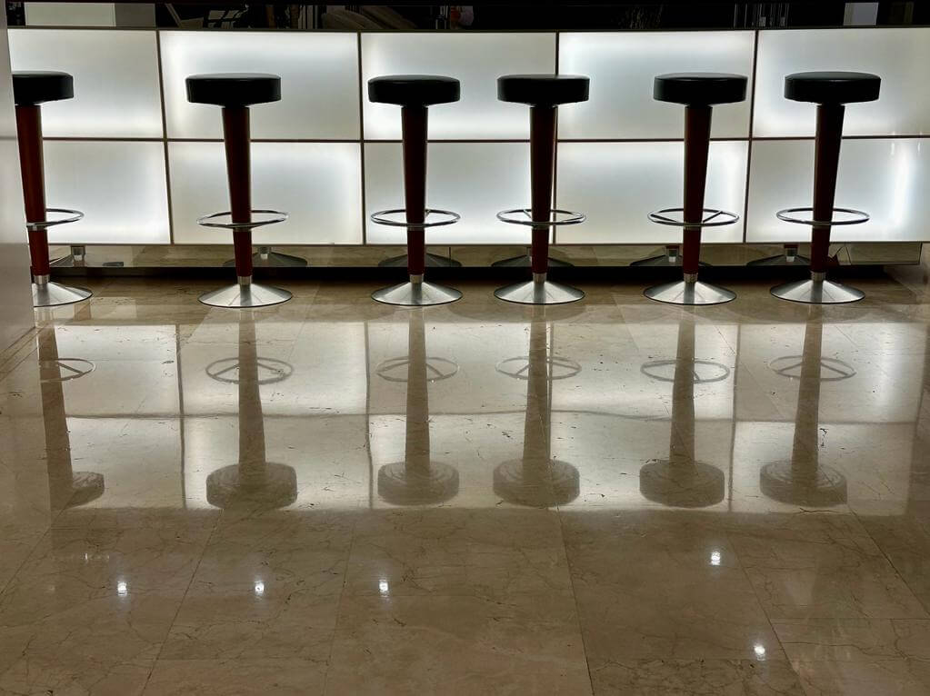 Abendessen gibt es immer in Form eines Buffets. Die Münchner Truppe sitzt draussen auf der Terrasse während wir Stuttgarter brav an unserer reservierten Tafel innen dinieren. Nach dem Essen findet sich die Truppe an der Bar zusammen. Da wird gefachsimpelt über Platz und Spiel und lustige Begebenheiten aus vergangenen Golfreisen zum Besten gegeben.