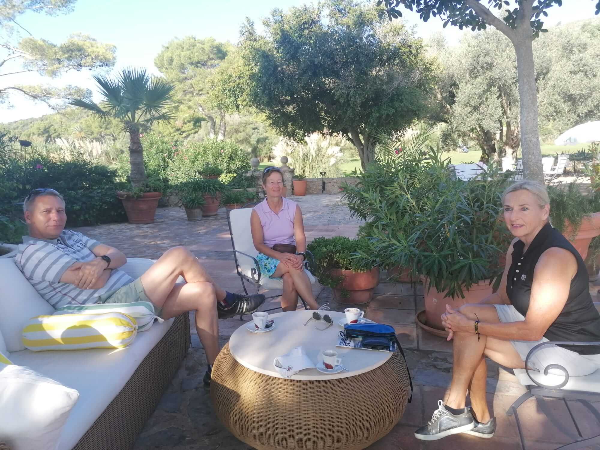 Am nächsten Tag spielen wir Capdepera. Ich spiele mit Klimi und Angi. Wir sind heute die letzten, deshalb gibt es vorher noch einen Kaffee auf der wunderschönen Terrasse am Clubhaus. Der Platz gefällt mir ausnehmend gut.