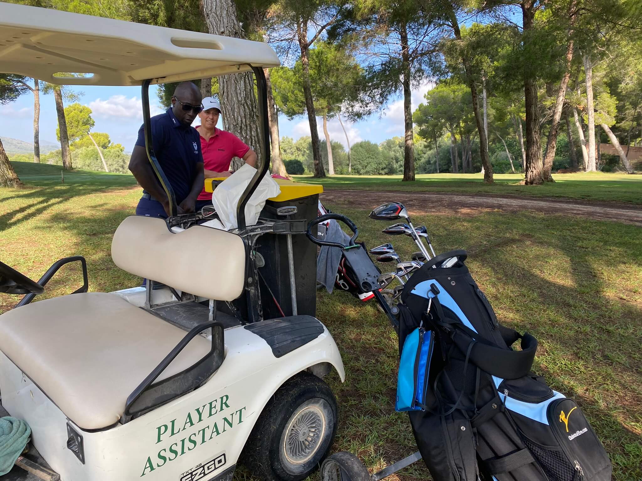 Samstag ist unser letzter Golftag. Es geht zum Golfplatz Canyamel. Heute habe ich die Freude mit Heinz (im Wägele), Regina und Uwe.