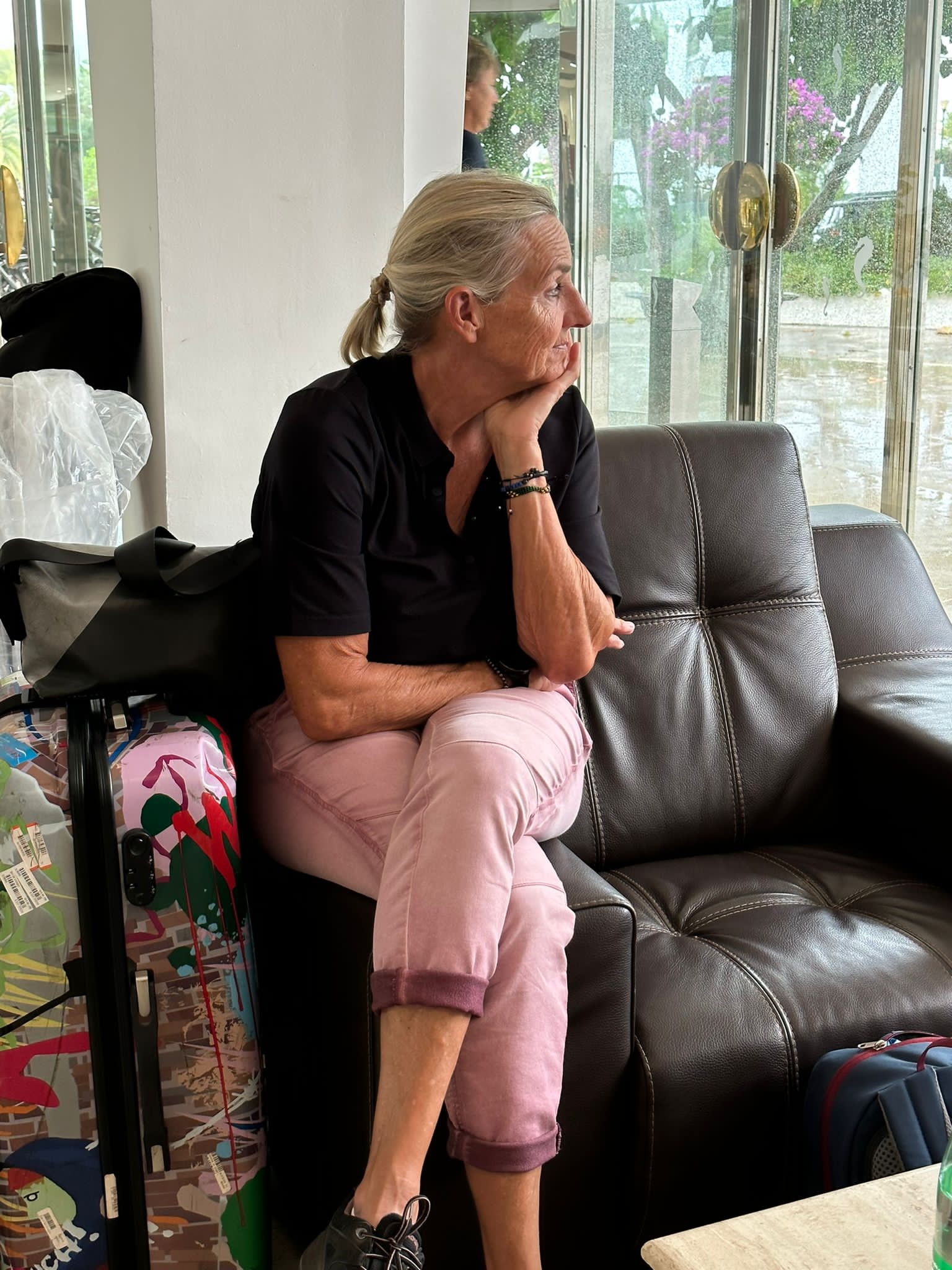 Insofern kommt es uns gelegen, dass unser Flug erst am Nachmittag geht. Dieses Mal sind wir 30 Personen, davon 16 aus Stuttgart, 14 aus München. Am Flughafen treffen sich viele Mitreisende früherer Trips wieder. Ich freue mich über ein Wiedersehen mit Laura, Olga und Georg. Bini ist auch dabei, Angi und Alex und auch Uwe. Nachdem ich in Sachen Schlägerbuchung schon ein paarmal mit Heinz telefoniert und gemailt habe, lerne ich ihn am Flughafen persönlich kennen.