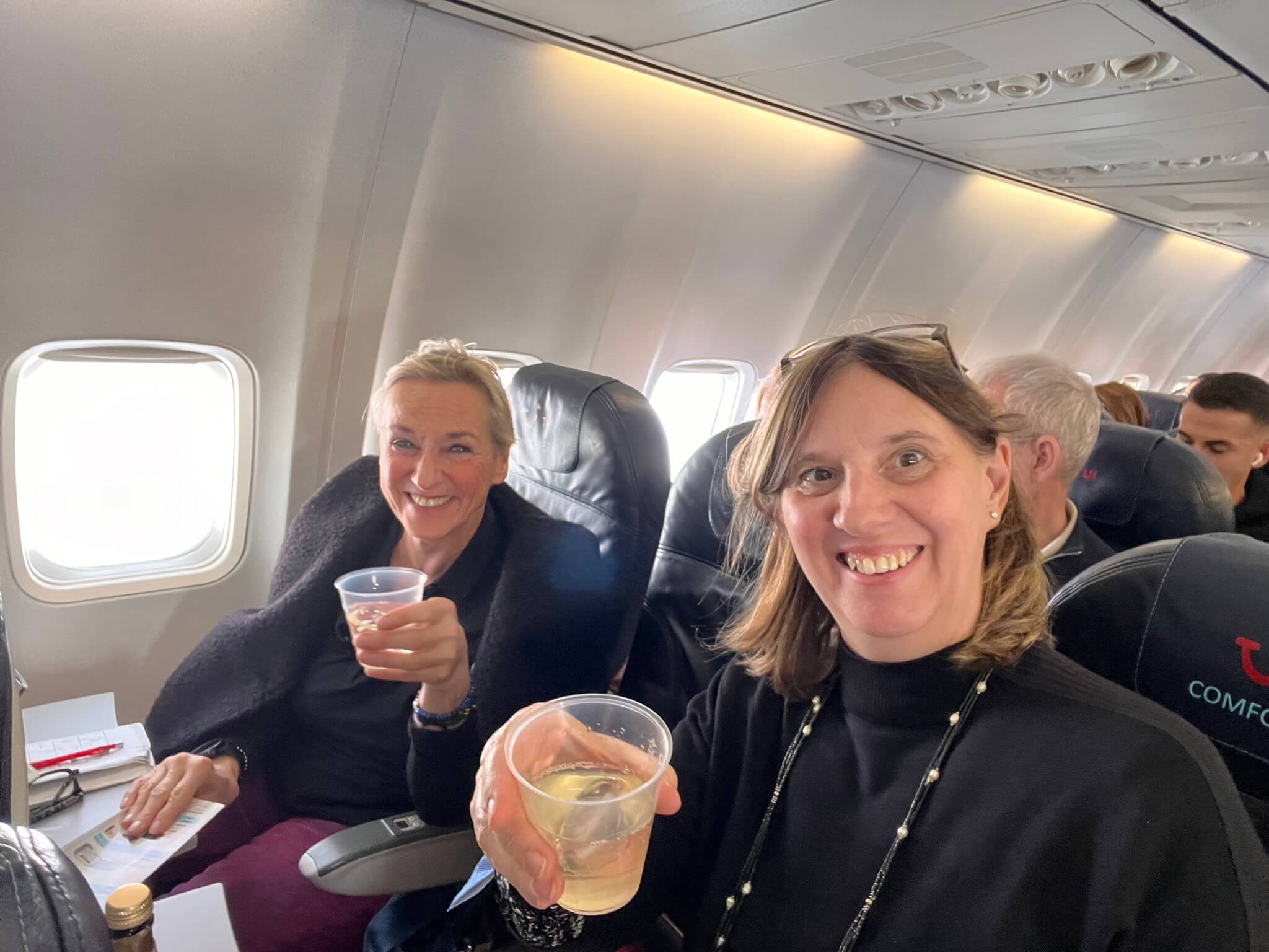 Im Flugzeug erwartet uns auf dem Platz zwischen uns ein älterer Herr, der sich extrem breit macht und dessen total verpilzte Nägel mir Schauer über den Rücken jagen. Als ich ihn nach 2 1/2 Stunden bitte, mich doch mal rauszulassen (ich habe den Fenstersitz) teilt er mir mit, dass ich Flugangst hätte. Von da an nehme ich die Airpods nicht mehr aus den Ohren. Zumal in der Reihe hinter uns ständig eine Trulla herumlamentiert, dass sie zu wenig Platz habe und wie ungerecht es doch sei, dass wir da vorne auf den Plätzen mit mehr Beinfreiheit sitzen.