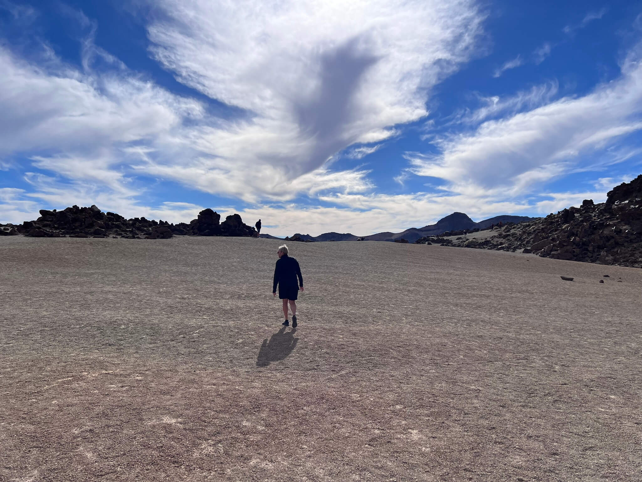 Immer mehr Touristen finden sich ein, nur um zu erfahren, dass sie nicht mit der Seilbahn auf den Berg fahren werden. Wir entscheiden uns stattdessen für eine kurze Wanderung in der Caldera. Dort sind sehr viele Wanderwege ausgeschildert und die bizarre Mondlandschaft sieht einfach toll aus.