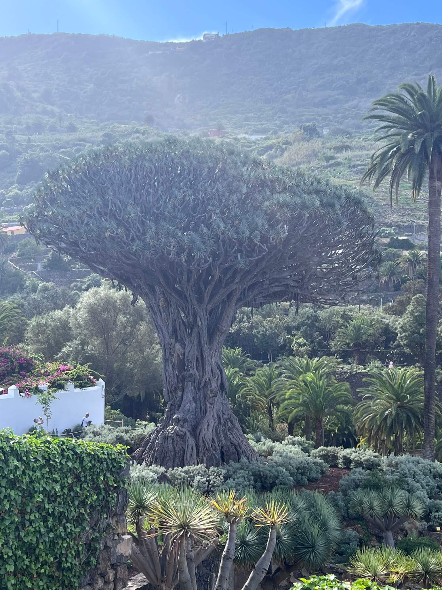 Für den Rückweg wählen wir eine andere Strecke. Erst mal geht es wieder fast 50 km den Berg hinunter und dann fahren wir nach Icod. Da soll der älteste Drachenbaum der Welt stehen. Der Drachenbaum hat nun unser Leben nicht bereichert. Wir schauen ihn kurz an und gehen dann in eine kleine Bodega zum Lunch.