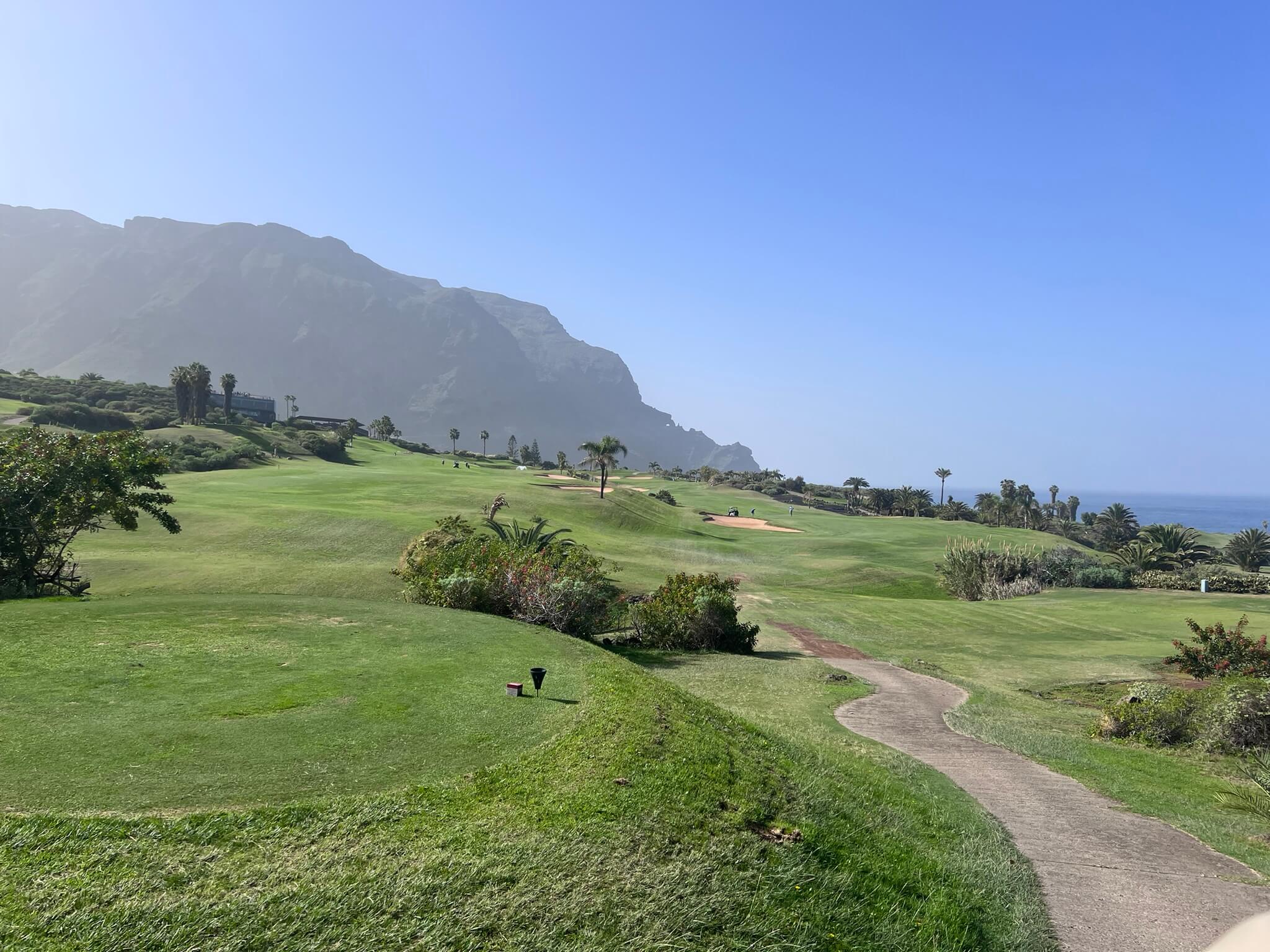 Heute geht es wieder in den Norden, zum Golfplatz Buenavista del Norte. Wir wählen die Route, die uns wegen ihrer landschaftlichen Schönheit empfohlen wurde. Die Aussicht ist in der Tat sehr beeindruckend, die Straße aber nicht für jeden gut verträglich. Moni ist froh, dass ich fahre. Sie klammert sich in Ermangelung eines Griffs an der Tür (Sparversion, Toyota) am Armaturenbrett fest und hinterlässt dort feuchte Spuren. Es ist immer wieder, als würde man senkrecht in den Abgrund fahren und hofft nur, dass die Bremsen nicht versagen. Des Weiteren ist man froh über jeden Meter, wo einem kein Auto entgegenkommt. Fotos gibt es nicht von der Fahrt weil Moni die Augen geschlossen hatte.