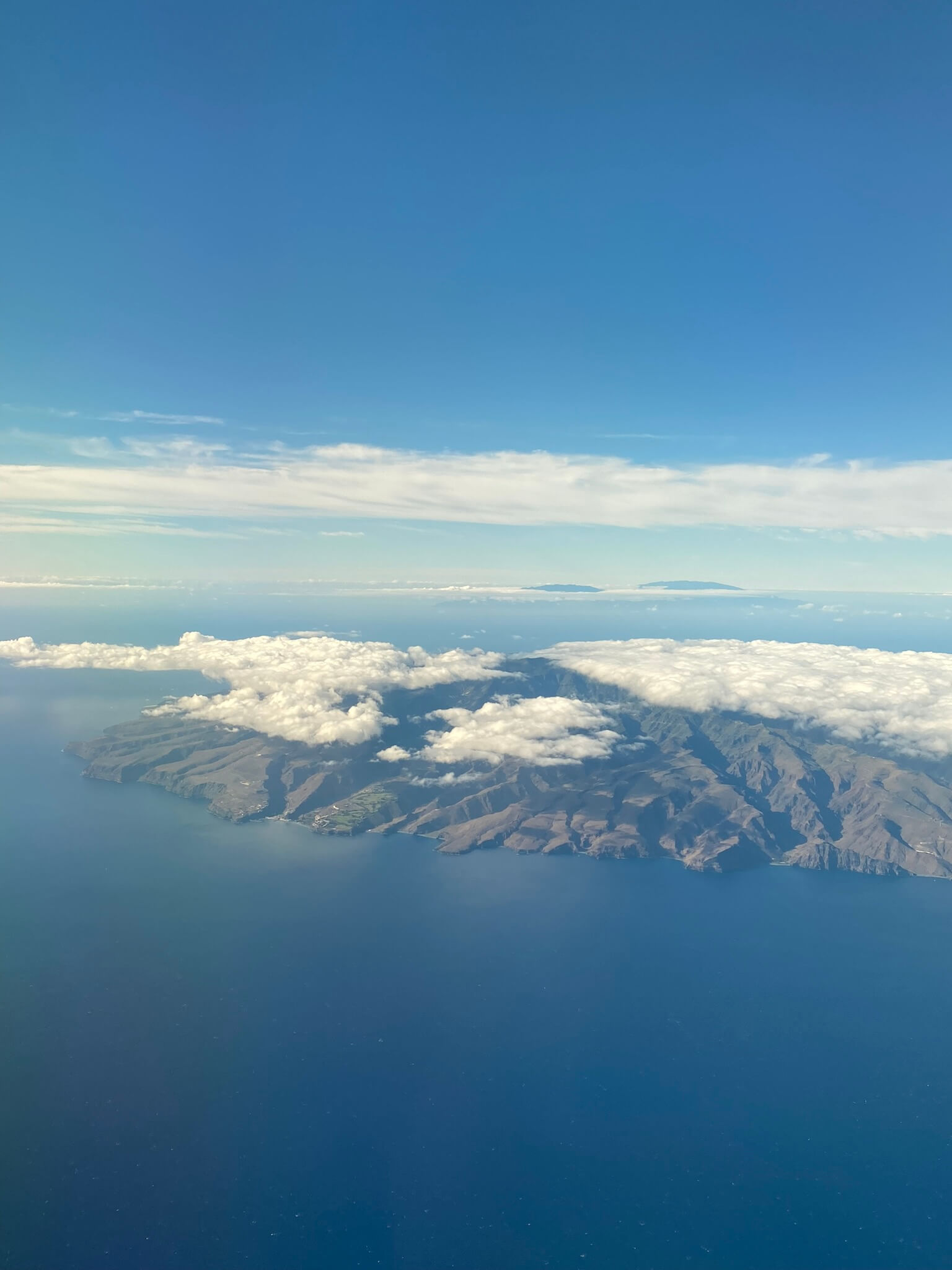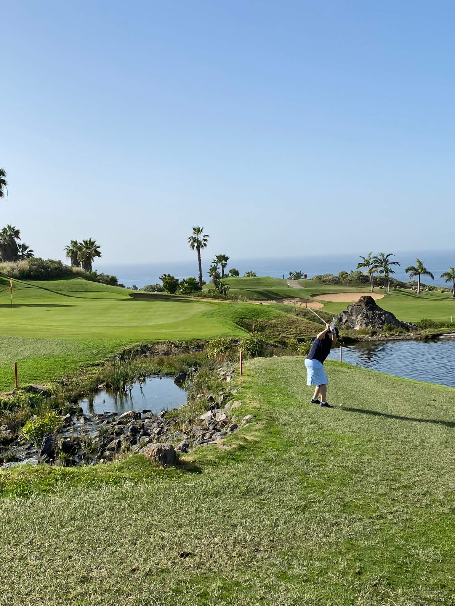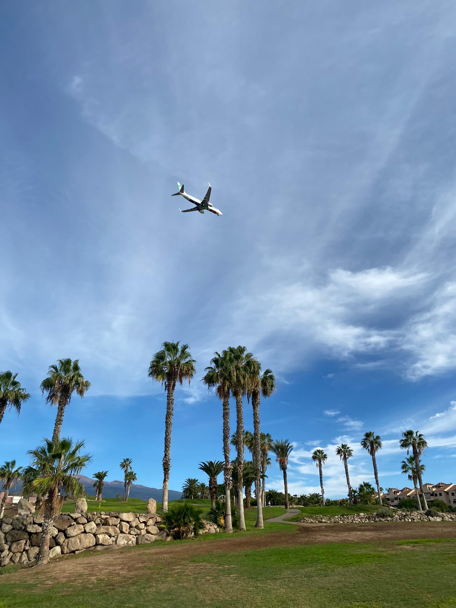 Beim Anflug kann man schon sehen, dass das Wetter herrlich ist. Von oben können wir den uns wohlbekannten Golfplatz auf La Gomera besichtigen.