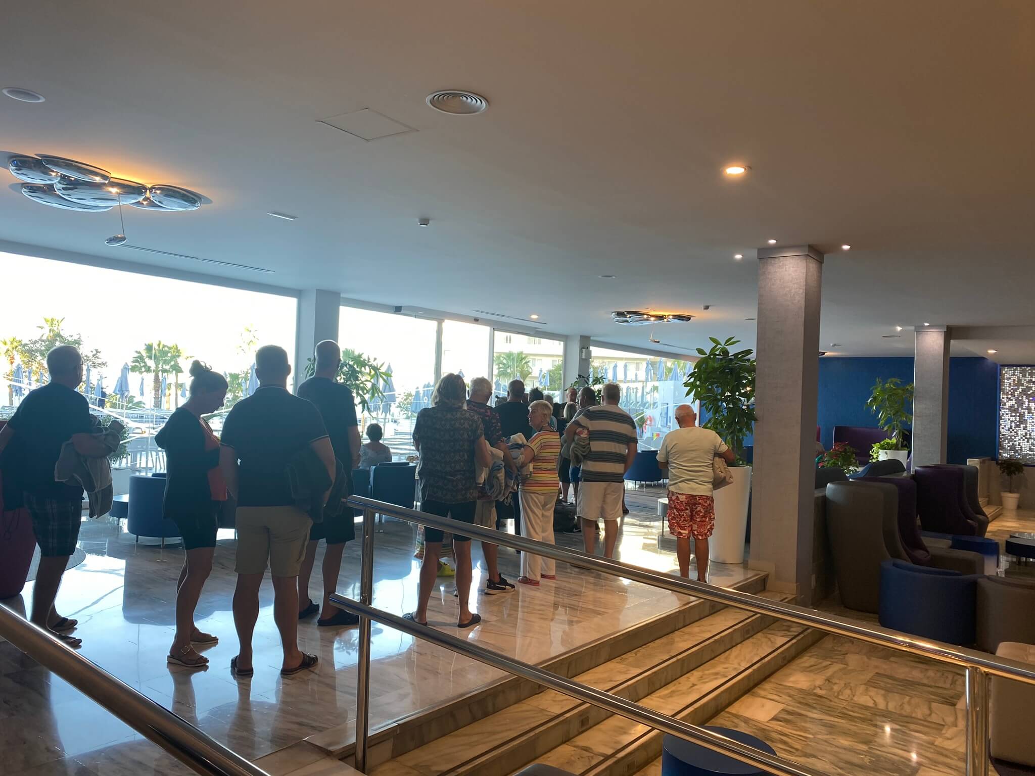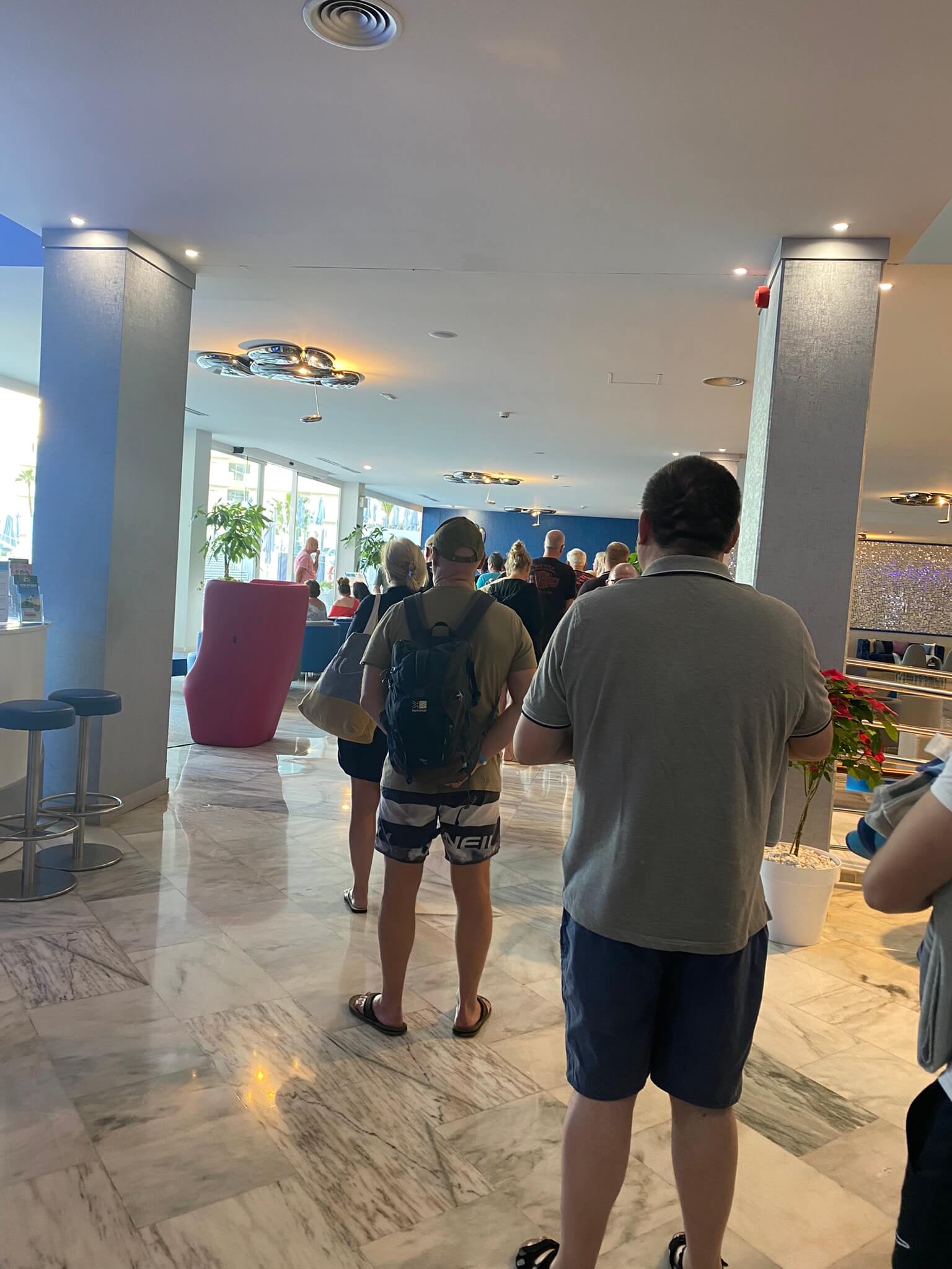 Wer einen bestimmten Liegestuhl benötigt, muss sich frühzeitig an der Tür zur Poollandschaft anstellen. Es gibt dort lange Schlangen ab etwa 8:15 Uhr. Lauter Leute mit Badehandtüchern unter dem Arm. Wenn um kurz vor 8:30 Uhr die Tür aufgeht, watscheln sie so schnell sie können hinaus und reservieren sich ihren Liegestuhl für den Tag. Wir müssen da zum Glück nicht mitmachen. Wir haben bisher immer einen gefunden, auch ohne Reservierung.