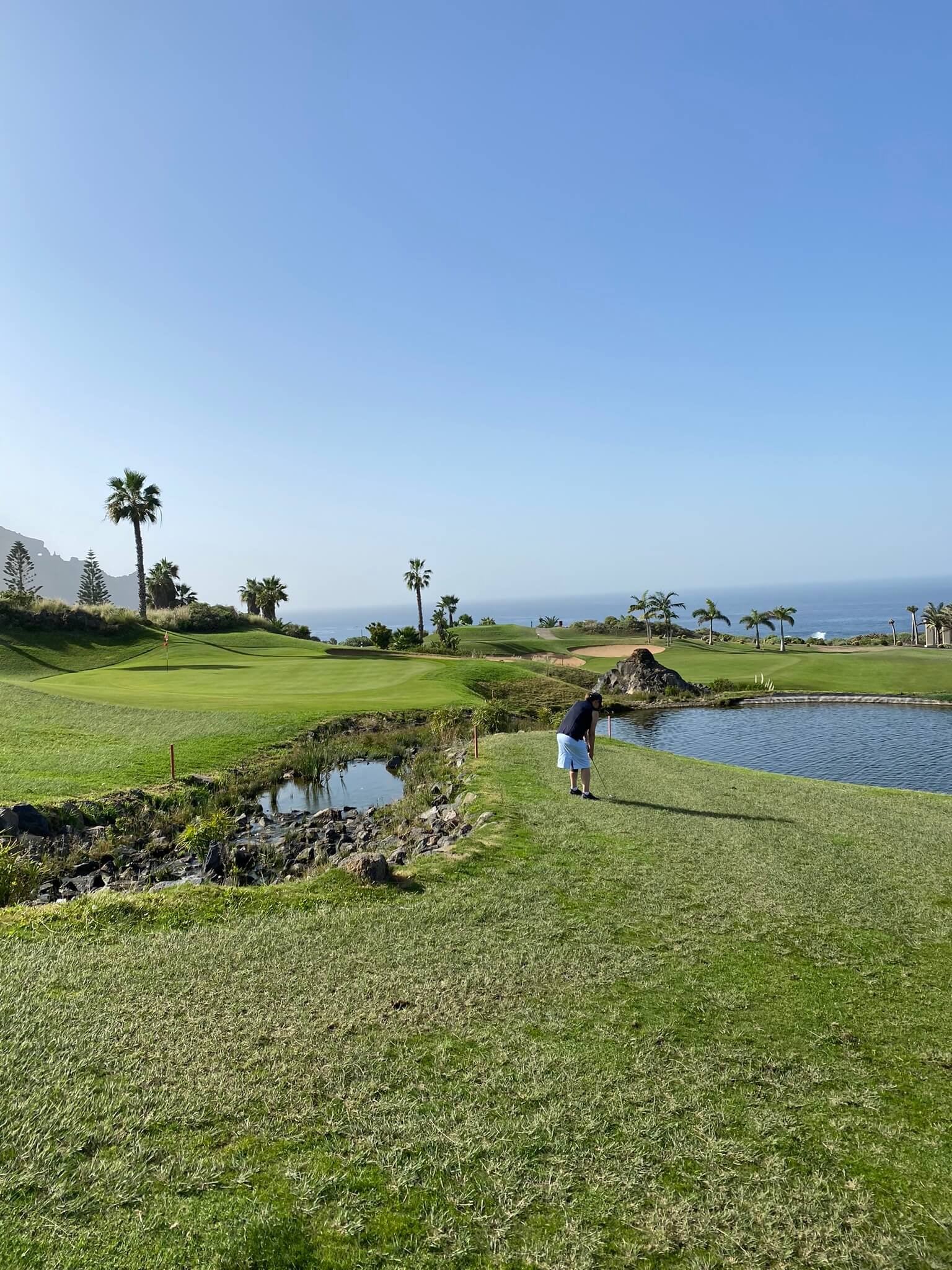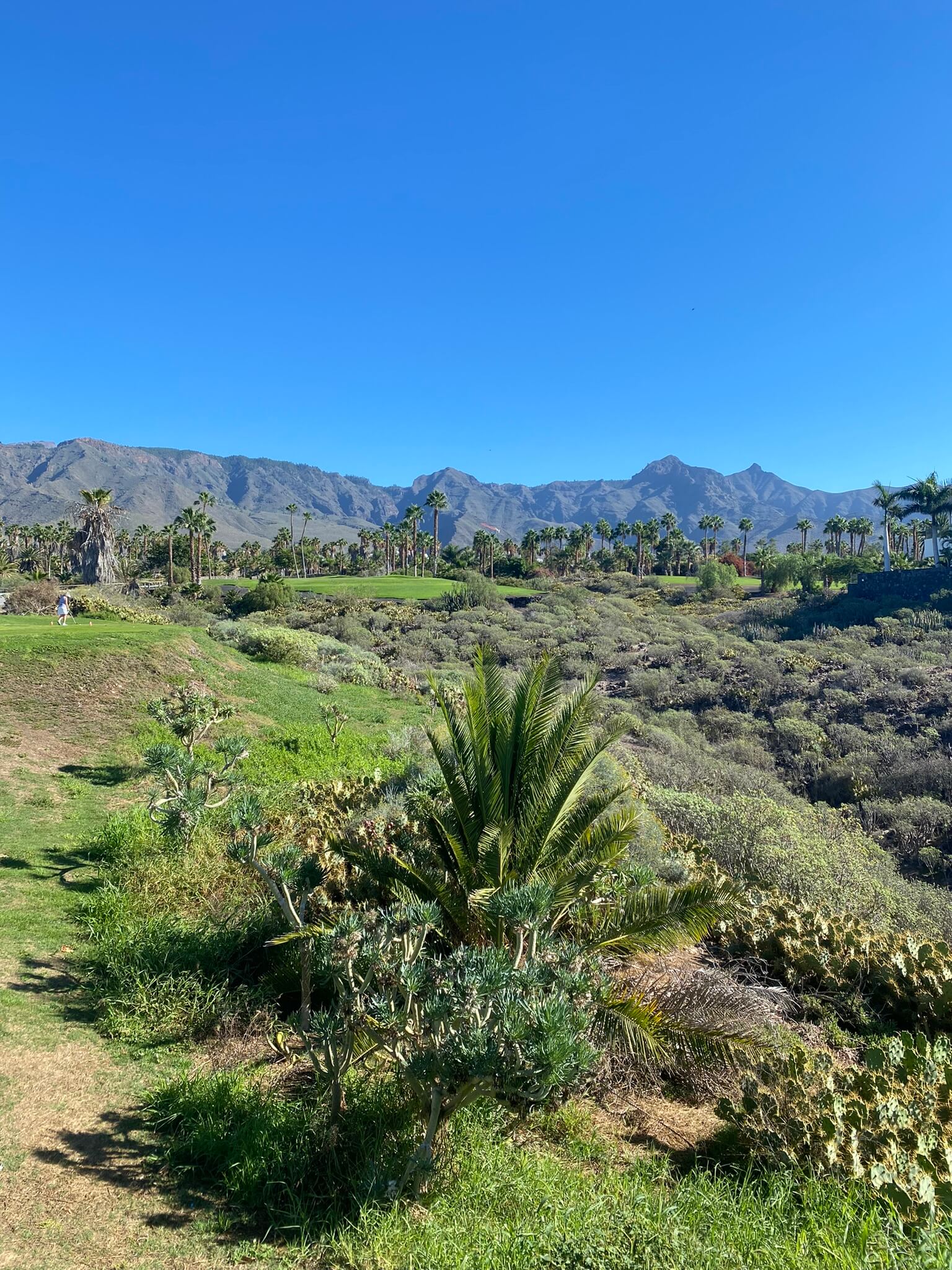 Heute spielen wir Amarilla Golf. Da ist deutlich weniger los als gestern in Costa Adeje. Schon bald wissen wir warum. Der Platz ist gar nicht schön. Die Grün sind zwar sehr gepflegt, aber ansonsten hat man den Eindruck, als wäre immer mal wieder an einer Stelle, wo gerade keine Häuser stehen Gras eingesät worden. Man muss mindestens viermal eine Straße über-oder unterqueren und es gibt kaum schöne Ausblicke. Meistens schaut man auf irgendwelche halb fertigen Häuser oder Schutthügel.
