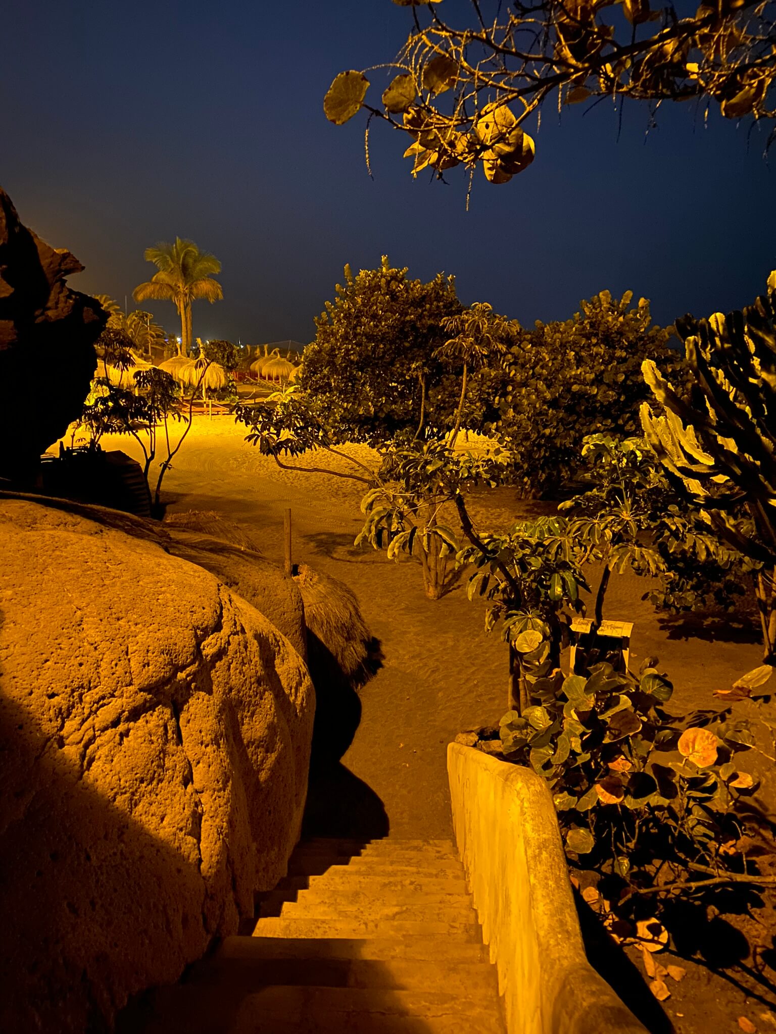 Nach dem Abendessen nehmen wir unseren Absacker (1/8 Liter Brandy) mit auf’s Zimmer und geniessen ein letztes Mal die OP-Beleuchtung auf unserem Balkon. Die 80-er-Party in der Cool Bar sparen wir uns heute.