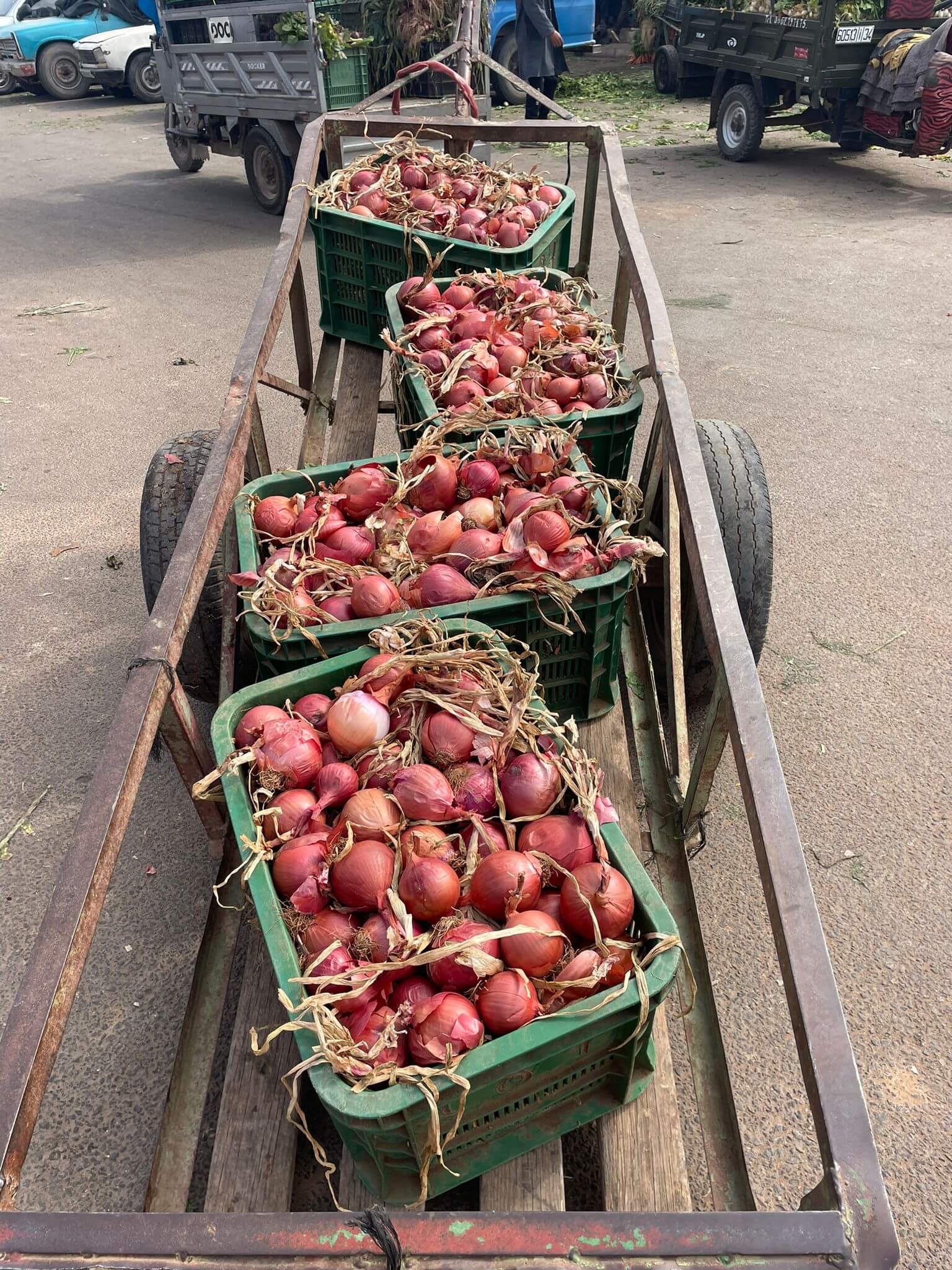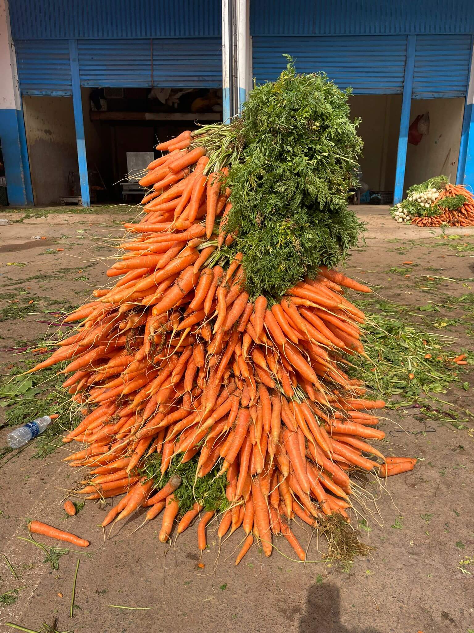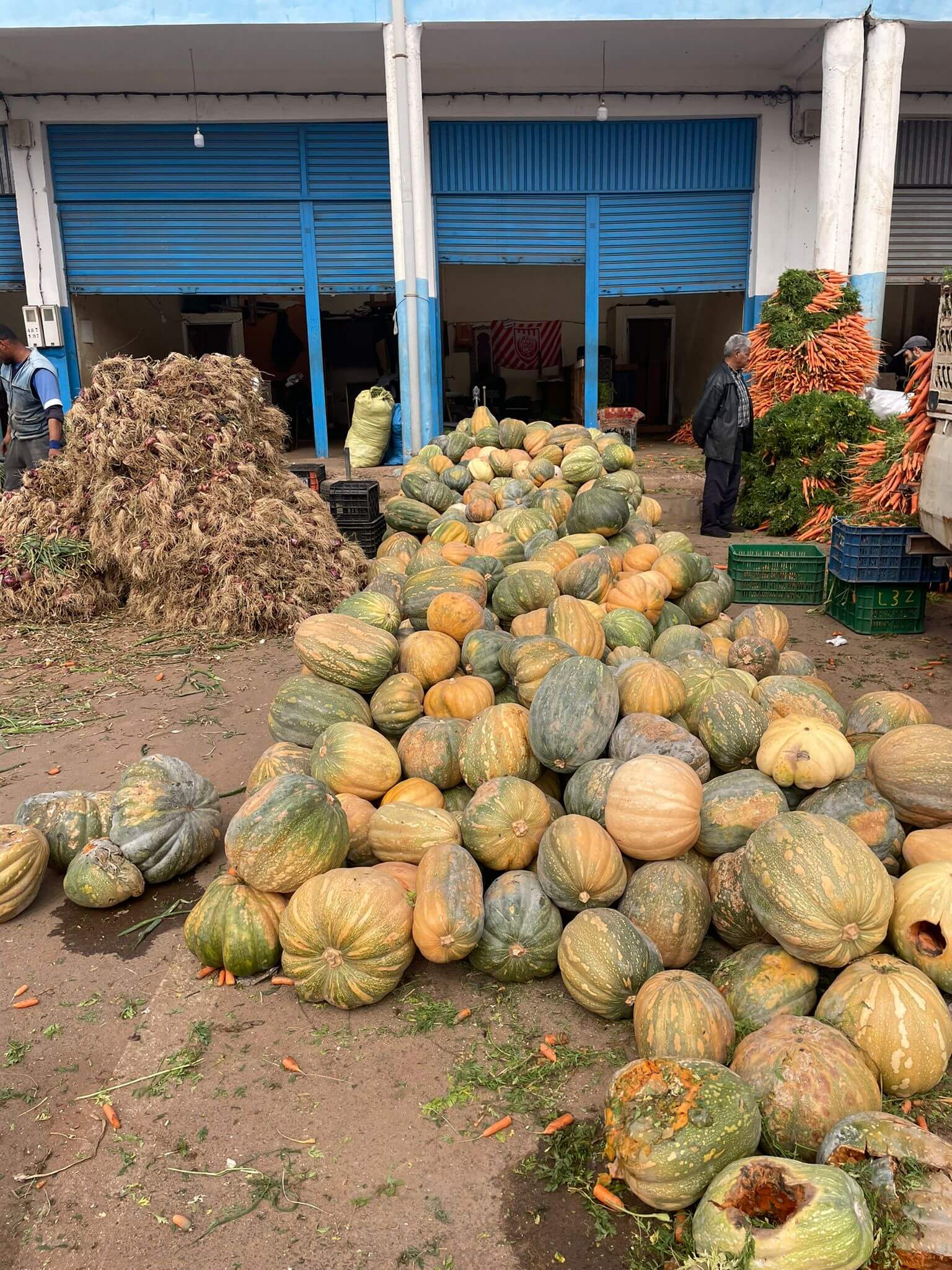 Als erstes besuchen wir den Gemüsegroßmarkt. Tonnenweise rote Bete, Möhren und anderes Gemüse werden da zum Kauf angeboten. Wir staunen über die Massen von Gemüse, dabei ist wohl das meiste schon verkauft, weil, wie auf dem Markt üblich, die Hauptzeit am frühen Morgen ist.