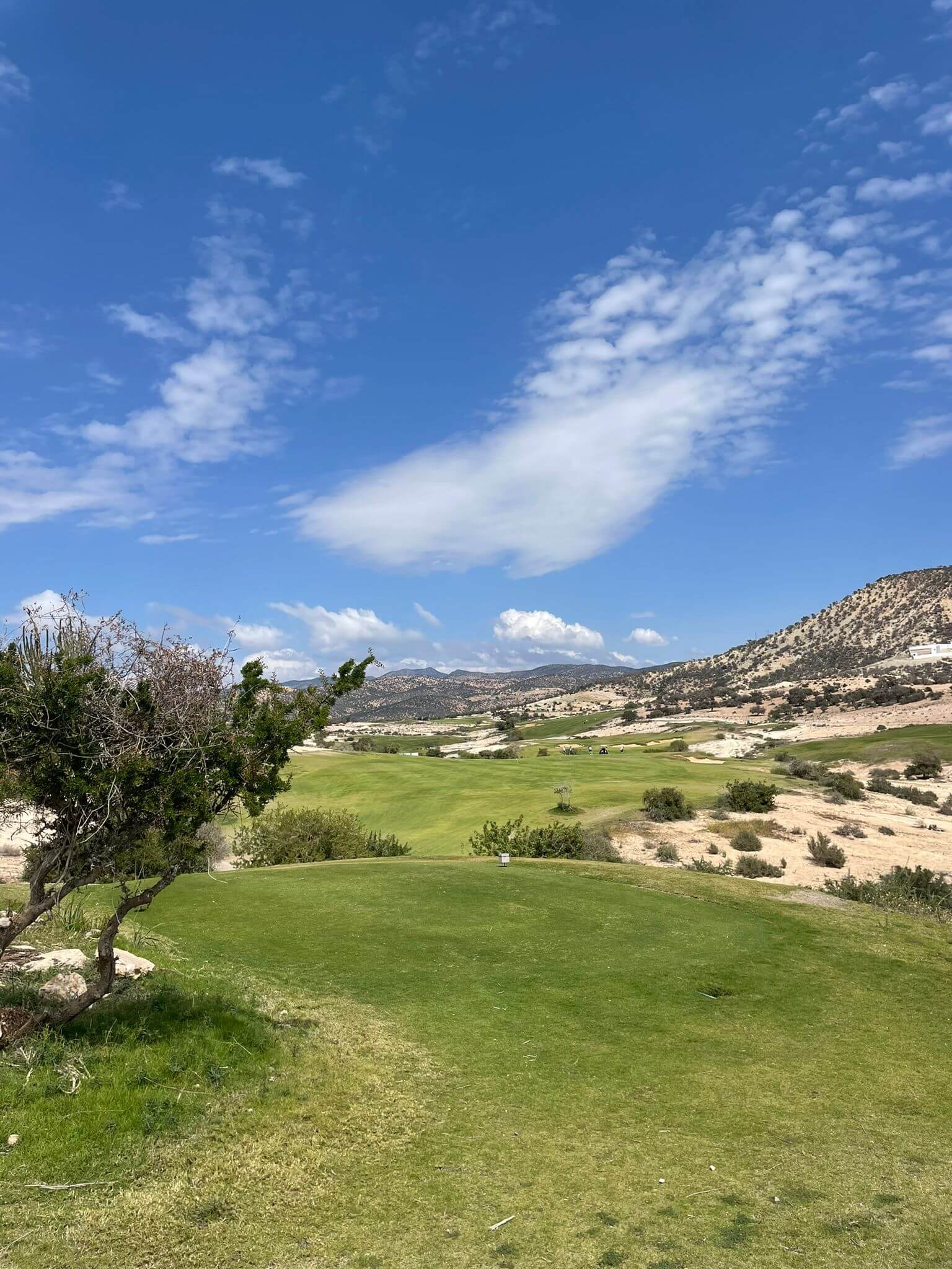 Heute spielen wir den Golfplatz Tazegzout. Der liegt etwas weiter entfernt in den Bergen. Der Transfer dauert eine gute halbe Stunde. Wider Erwarten klappt dort alles gut. Es stehen Carts zur Verfügung und die gebuchte Teetime klappt auch. Allerdings ist es dort heute auch nicht sehr voll.