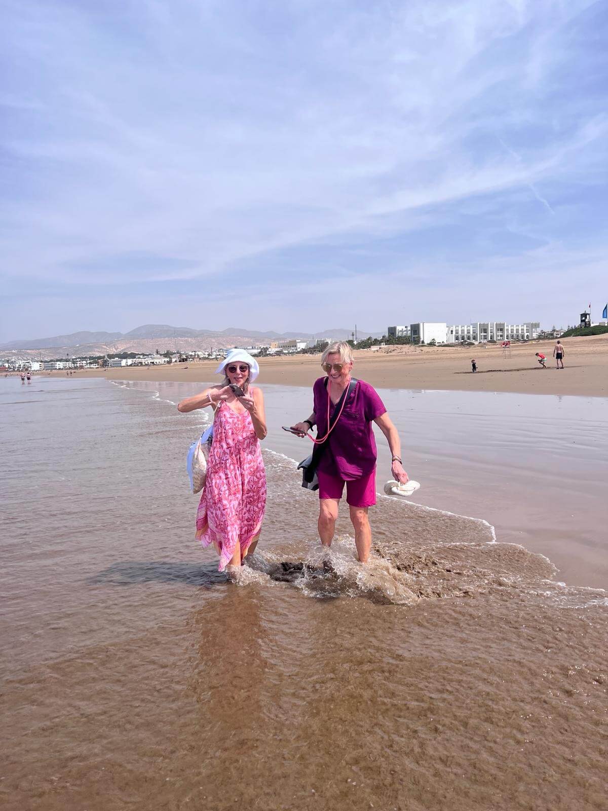 Unser Haus liegt etwa halfway zwischen Haupthaus und Strand mit Strandrestaurant, wo es meistens das Mittagessen gibt. Der Strand ist feinsandig, breit und schön. Nach links darf man dort allerdings nicht laufen, da dort der Königspalast ist. Nach rechts Richtung Agadir kann man aber viele Kilometer gehen.