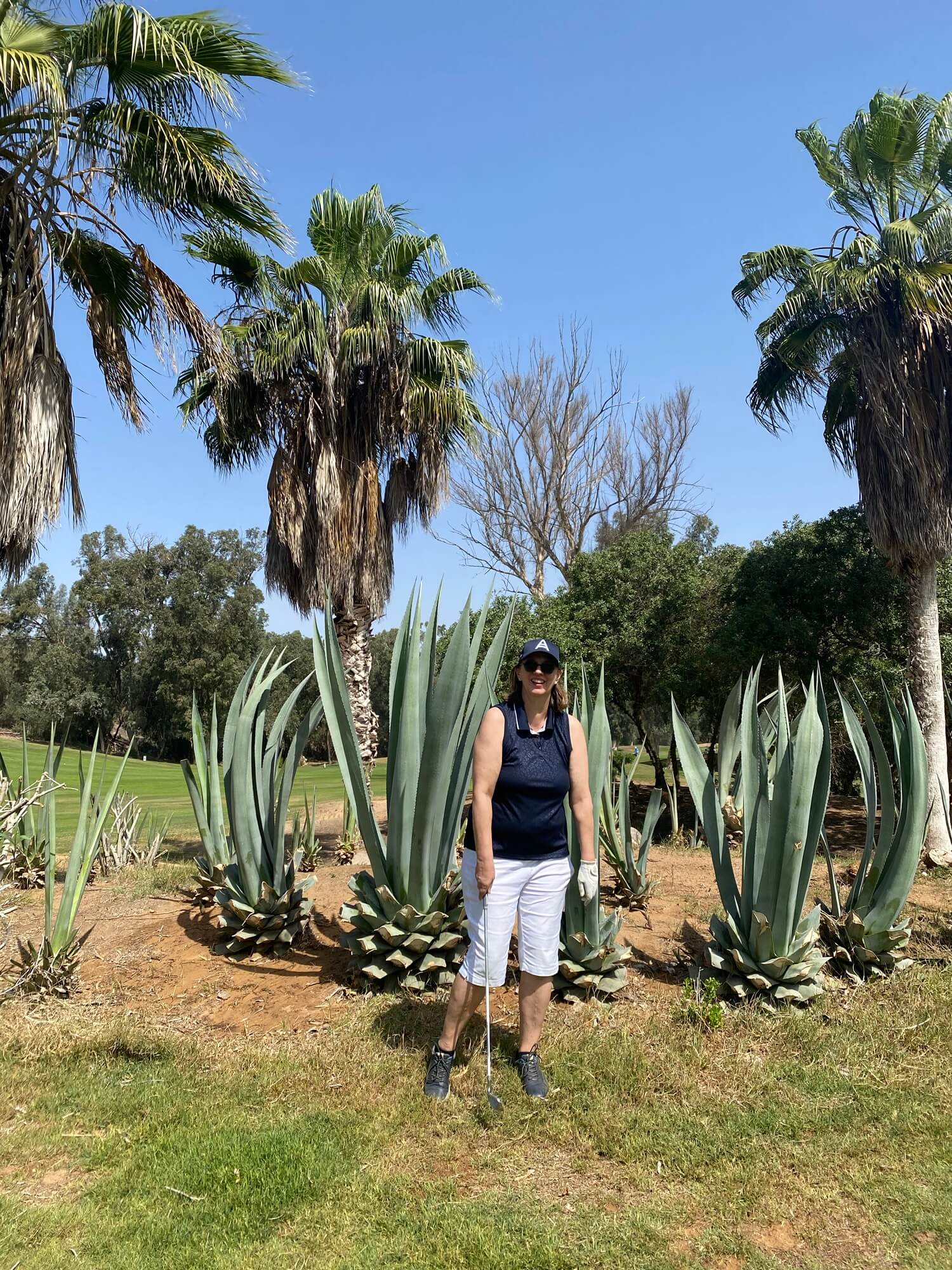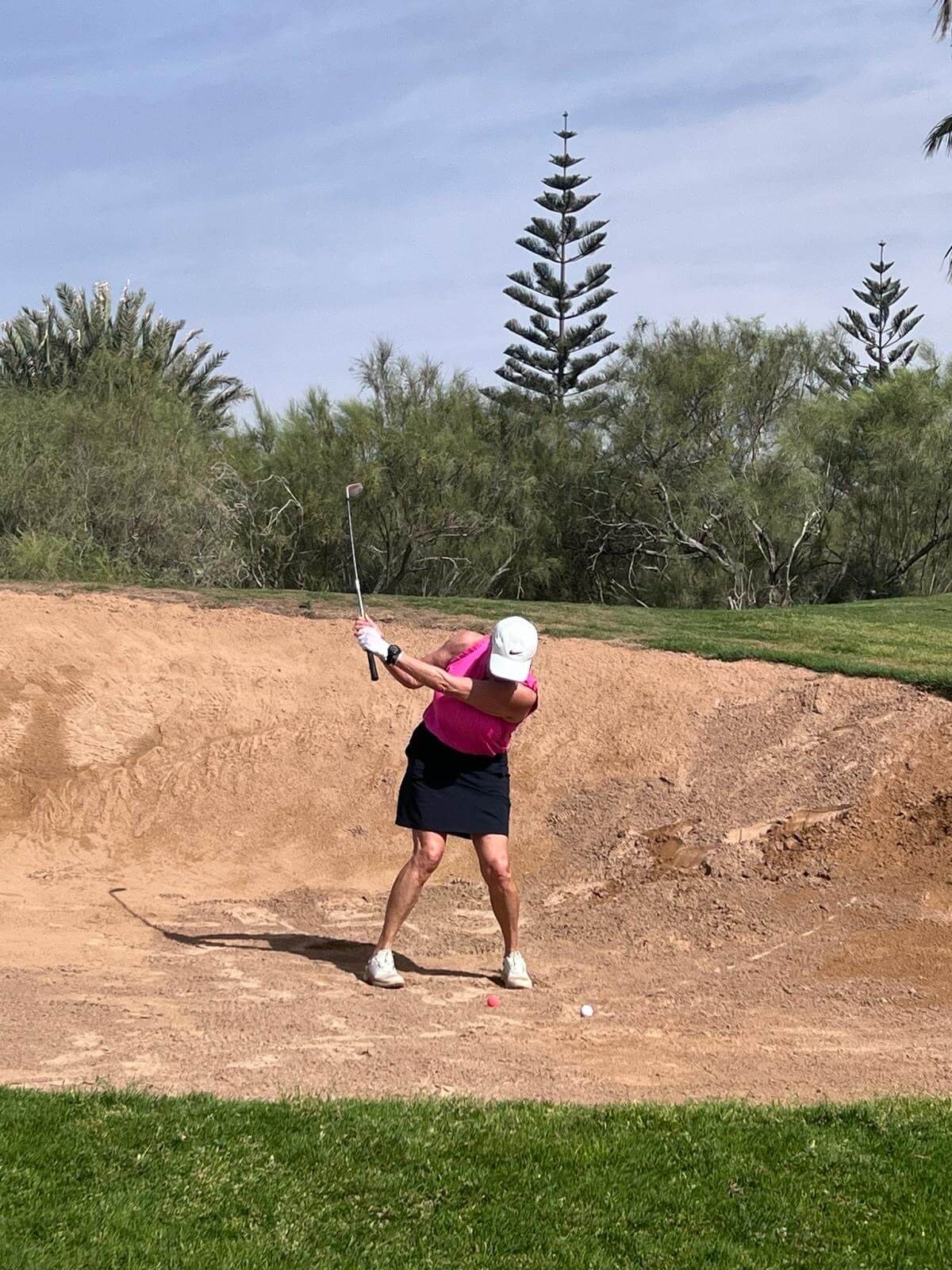 Letztlich können wir dann doch schon gegen 13 Uhr los nach einer guten Stunde Wartezeit. Wir spielen den Tikida Course, der uns sehr gut gefällt. Die Stimmung ist allerdings etwas gereizt und da hilft auch nicht, dass wir über die gesamte Runde an jeder Bahn hinter vier Franzosen warten müssen, die offenbar alle Zeit der Welt haben.