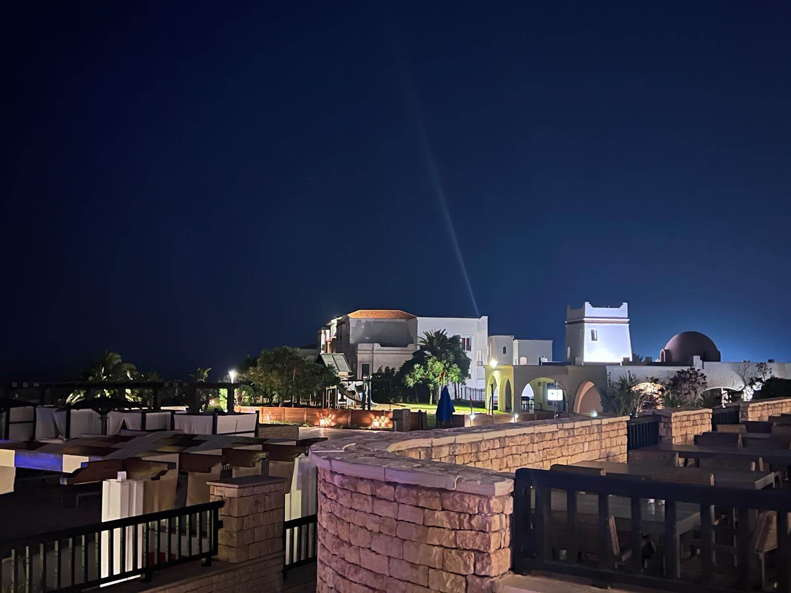 Als ich am Morgen zum Frühstück gehe, sehe ich wie Arbeiter den Sand, der gestern für den afrikanischen Abend an der Bar überall verteilt wurde, wieder zusammenkehren und in Säcken einsammeln müssen. Die Armen!