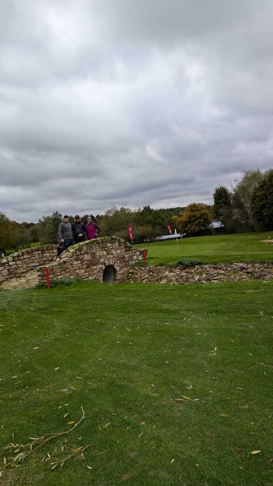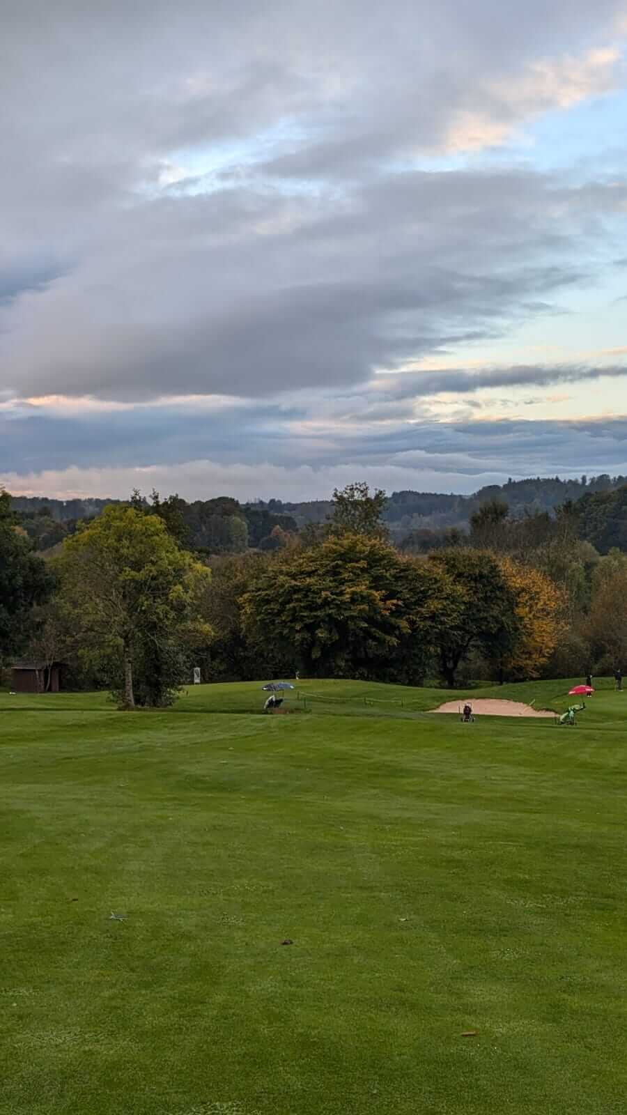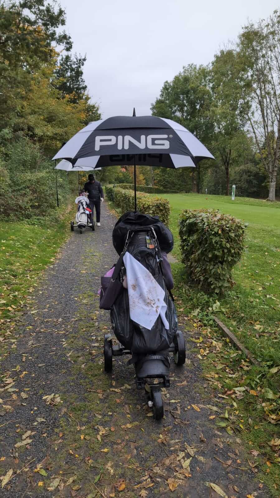 Robert verabschiedet sich hier von uns. Angeblich wird sein Cart für eine Turnierteilnehmerin benötigt, die sonst ihr Bag tragen müsste. Wir vermuten aber, dass er keine Lust hat mit uns zu spielen. Was soll’s. Zu dritt spielen wir weiter und schon bald beginnt es zu regnen. Und warten müssen wir auch an jeder Bahn, zumal wir ja nur noch zu dritt sind.