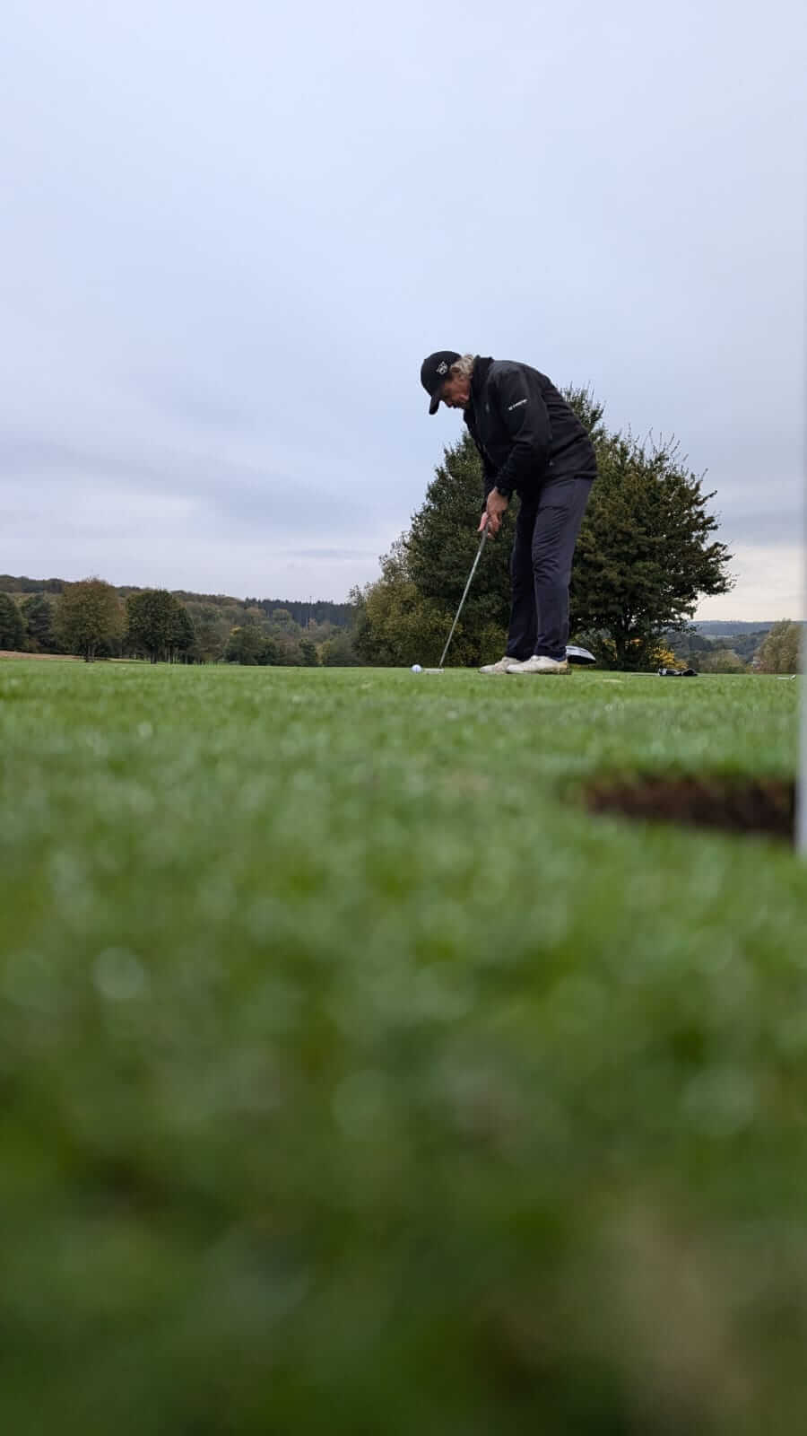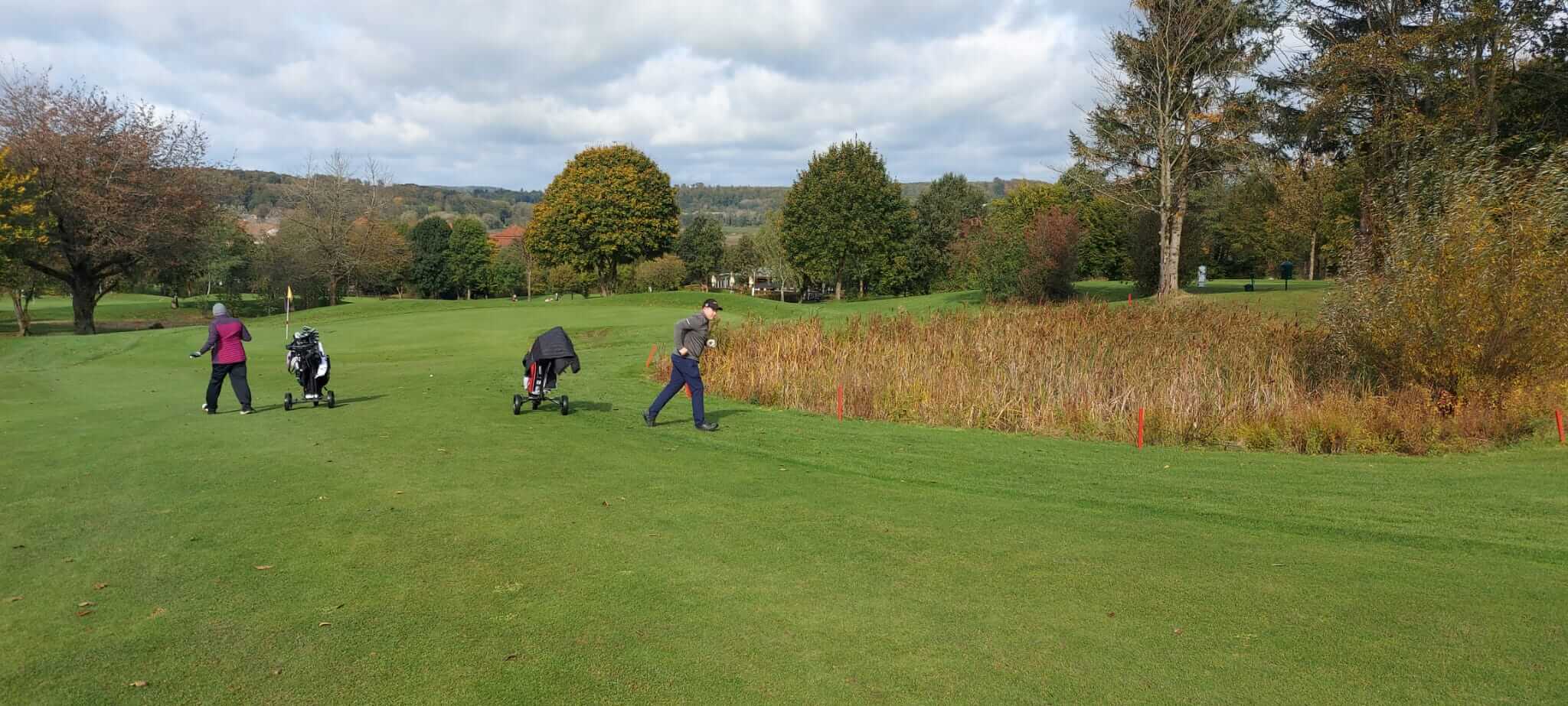 Am Sonntag, den 13. Oktober geht es los. Leon, Heinz und ich fahren in den Westerwald zum Wilson Invitational. Gewohnt pünktlich steht Leon um 05:50 Uhr mit dem Bus der SportKultur vor meiner Tür. Wir verstauen Golfausrüstung, Wägele und Gepäck und fahren nach Untertürkheim, um Heinz abzuholen. Auch Heinz ist schon fertig, obwohl für ihn die frühe Morgenstund‘ kein Gold im Mund hat.