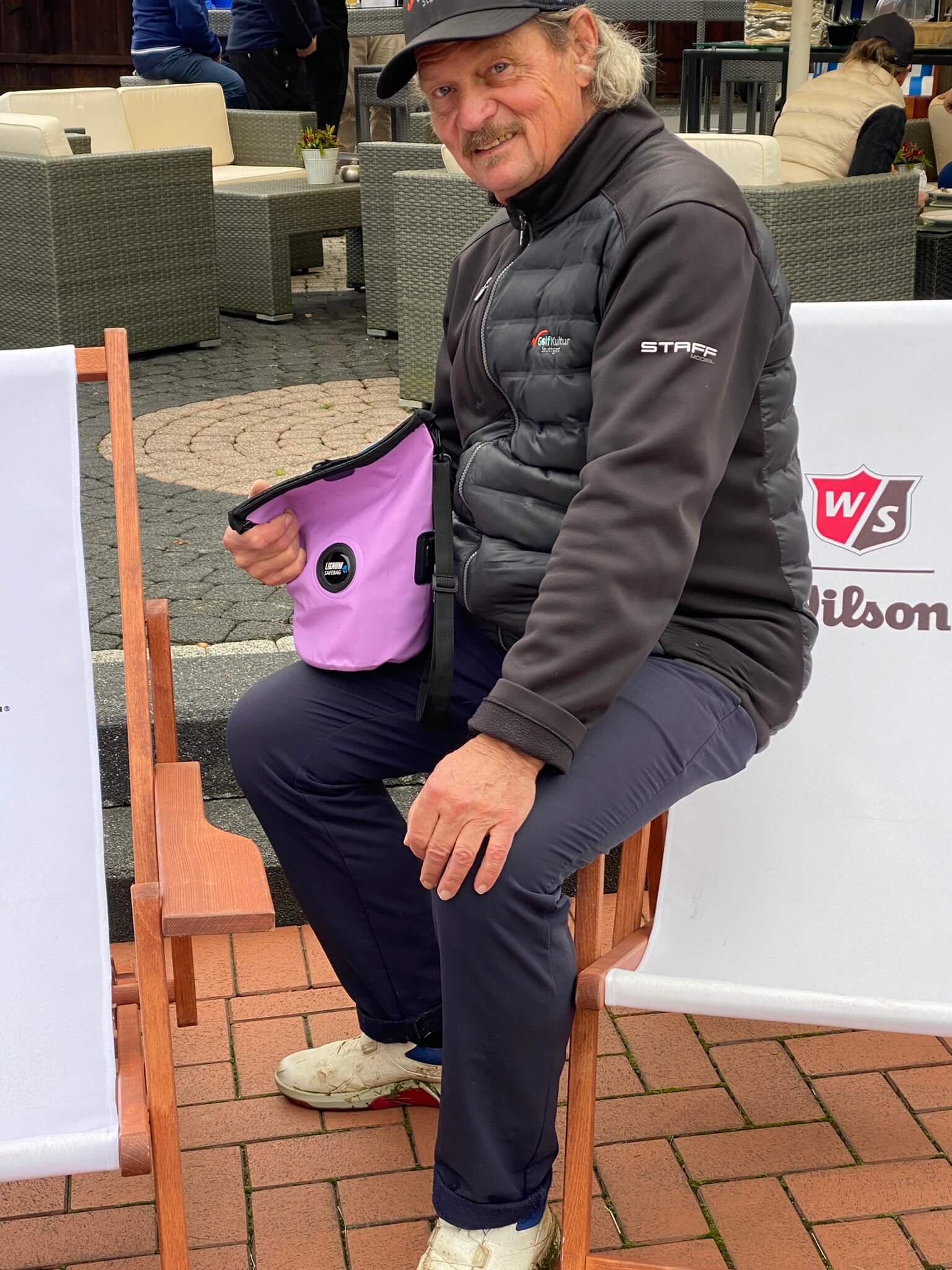 Heinz und Leon sind da aus anderem Holz geschnitzt. Tapfer halten sie durch bis zum letzten Loch und tauchen erst anderthalb Stunden später im Clubhaus auf. Nun müssen wir noch die klatschnassen Sachen im Bus verstauen. Das muss ich zuhause alles auspacken und trocknen lassen.