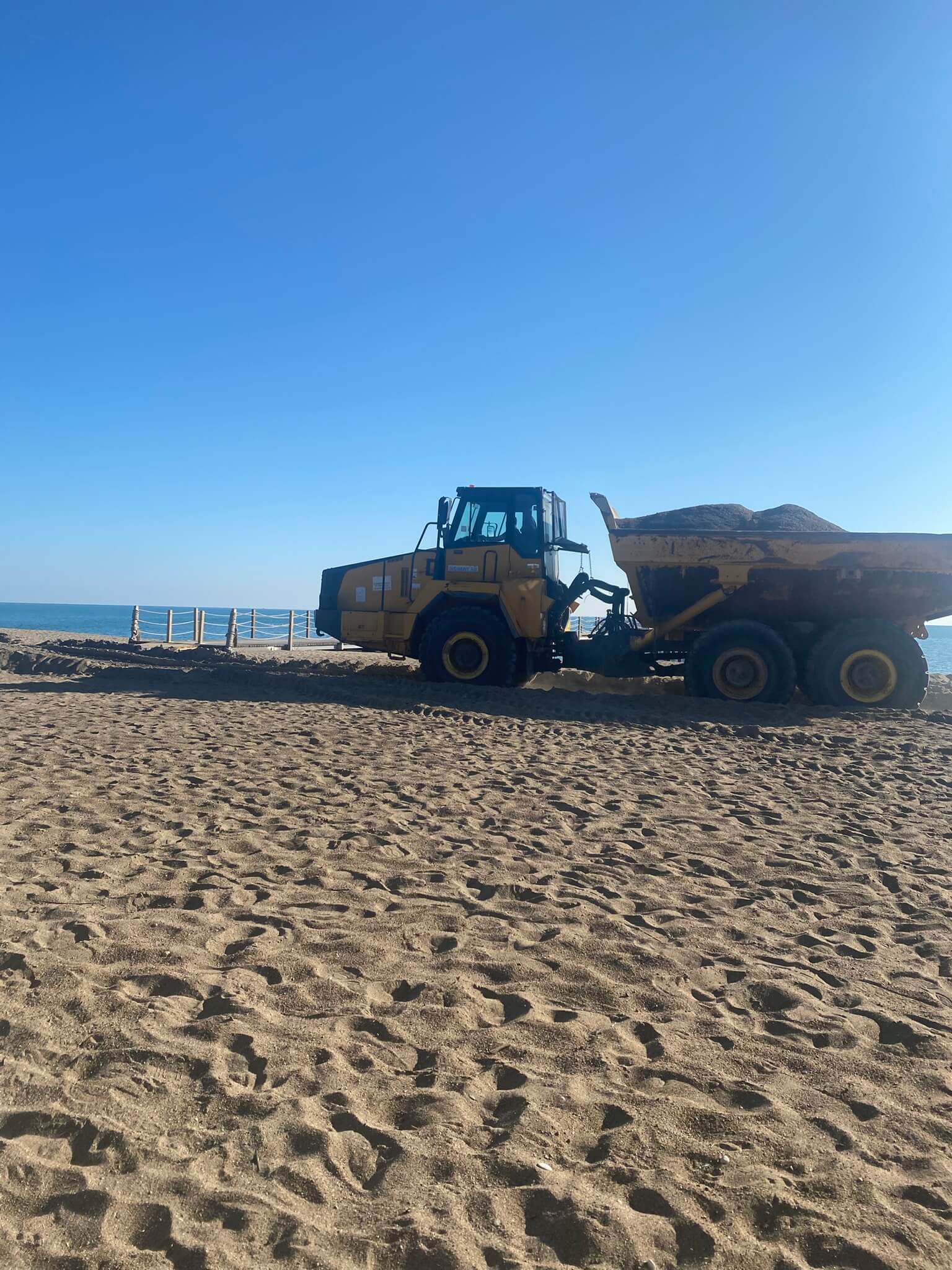 In der Früh schwimmen wir wieder im herrlich beheizten Außenpool und relaxen dann am Strand. Am Strand sind riesige Sandberge aufgetürmt. Keine Ahnung was die da machen. Unermüdlich fährt ein Tieflader Sand hin und her. Aber ich bin sicher, dass zu Beginn der Sommersaison wieder alles tipp topp sein wird.