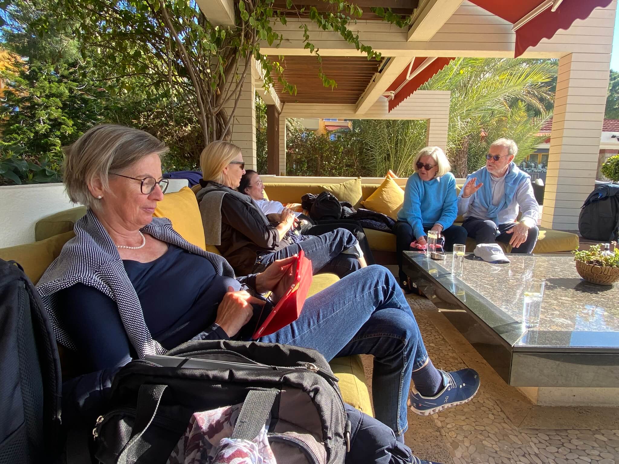 Die zwei Münchner, Heidi und Josef werden schon um 7:30 Uhr zum Flughafen abgeholt. Klar, dass wir die beiden zum Bus bringen. Die Stuttgarter dürfen noch bis 13:30 bleiben und ausgiebig Frühstück und / oder Mittagessen geniessen und an der Pool- oder Strandbar chillen.