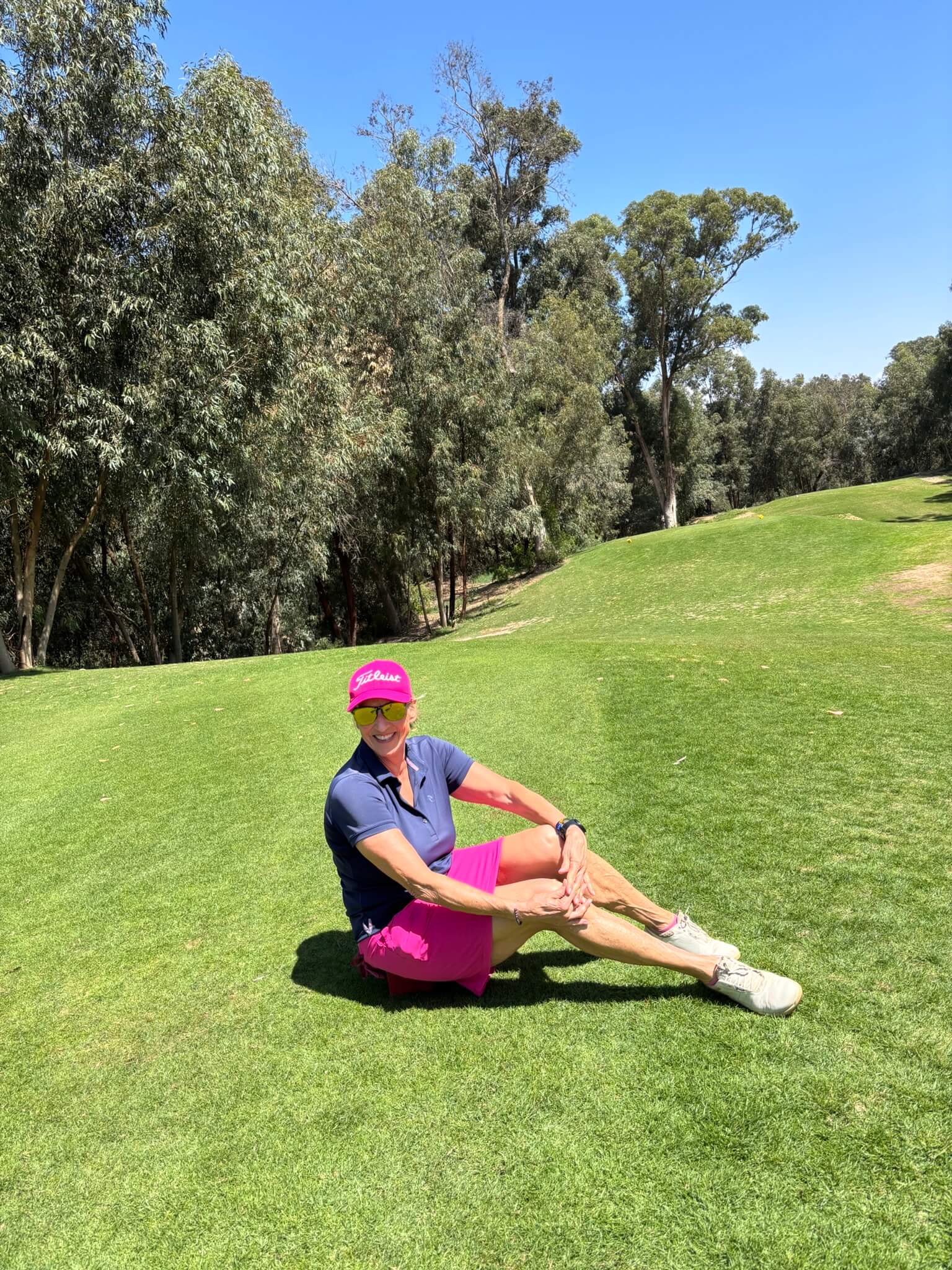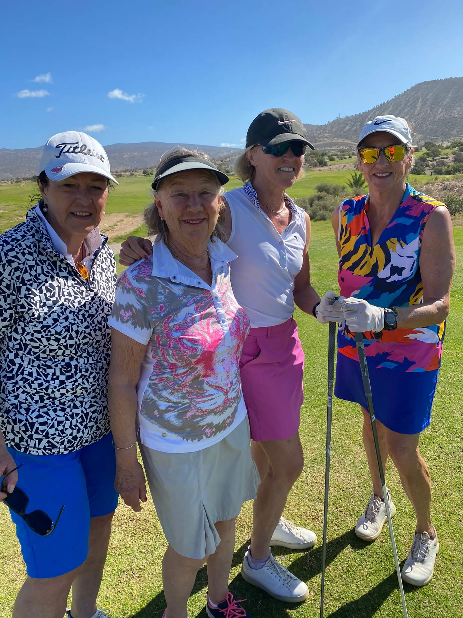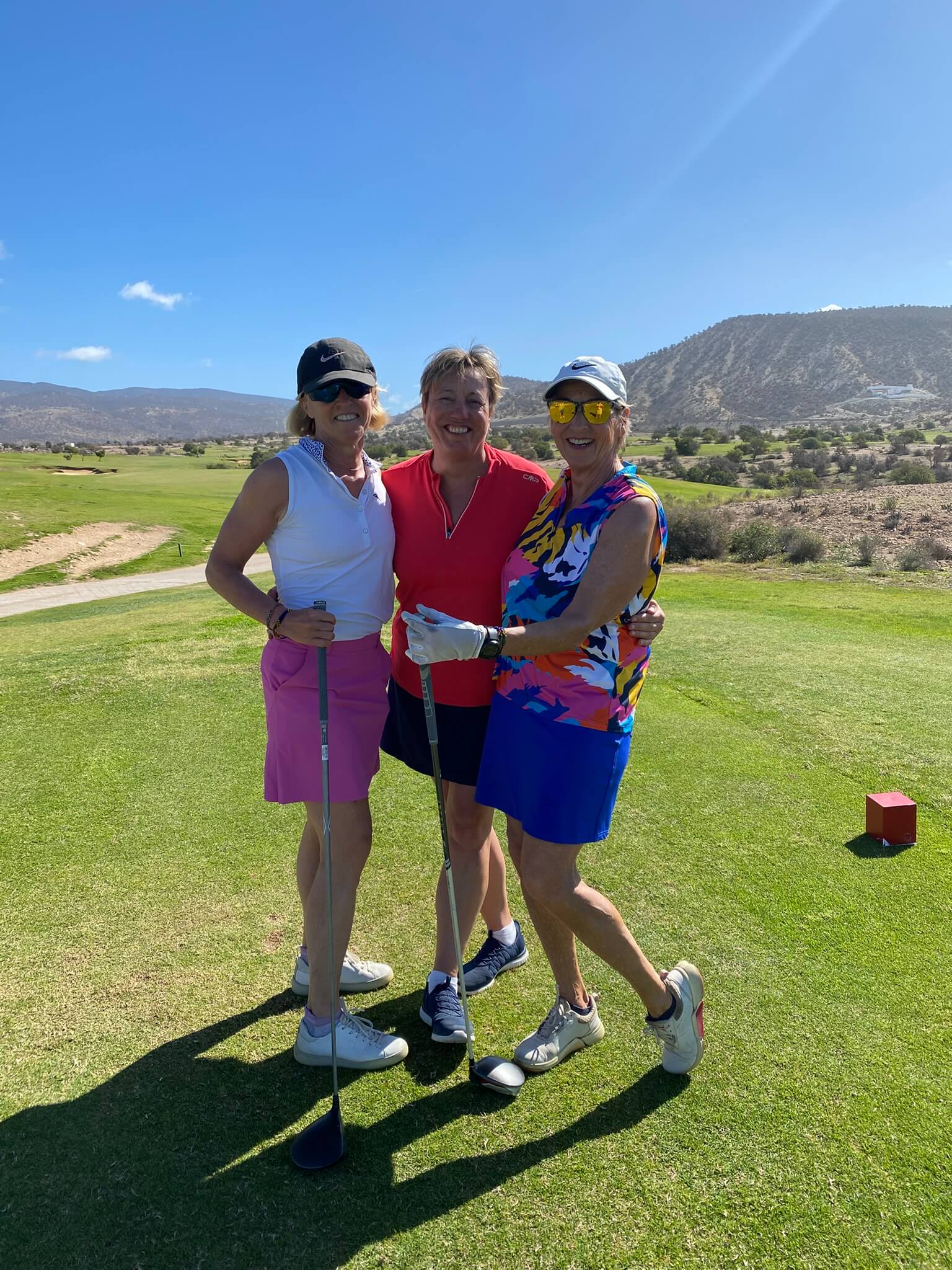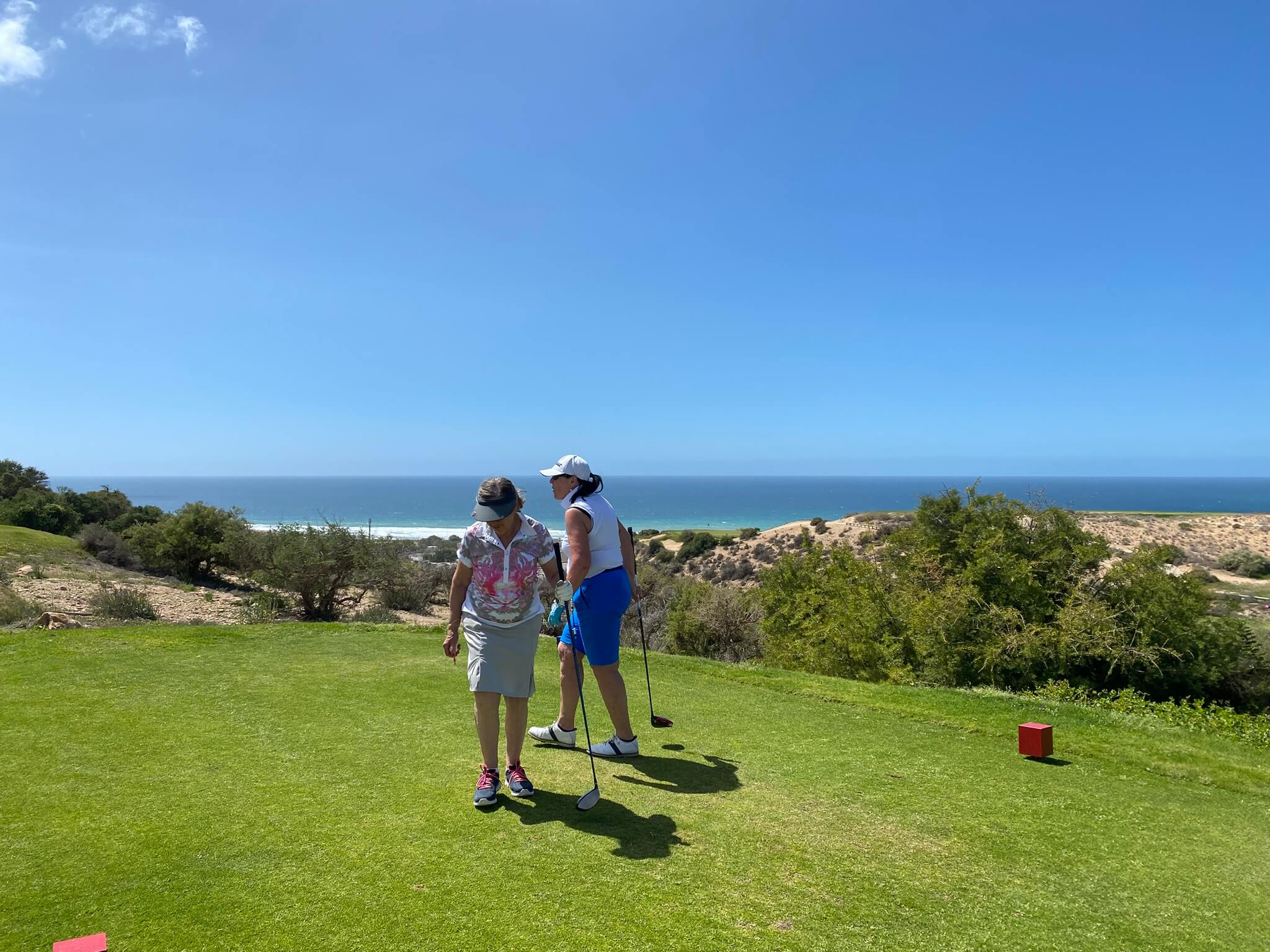 Alle auf Les Dunes. Gefällt allen besser als der Platz, den sie gestern gespielt haben. Ich habe Gabriele, Rita und Christine dabei. Passt.