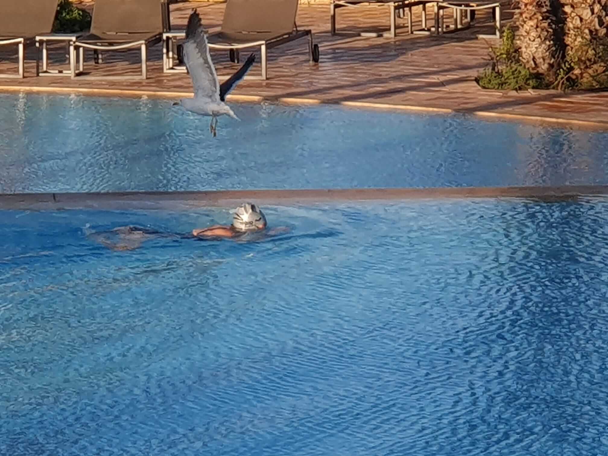 Morgens um 7:00 Uhr schwimmen gewesen. (Christina lässt grüßen). War toll.
