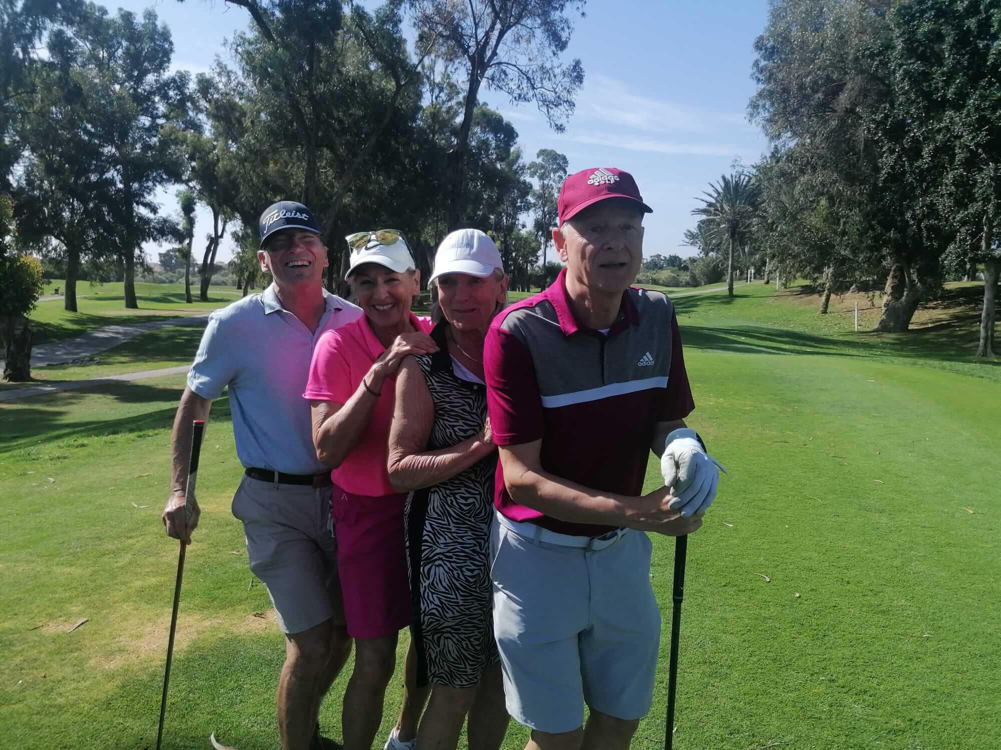 Golf Le Soleil. Im Familienflight mit Coni, Marike und Josef. Spaß gemacht, war aber doch ganz schön zäh durch viel Wartezeit. Morgens hat es noch genieselt. Aber als wir anfingen, Golf zu spielen, wurde das Wetter besser und trocken.