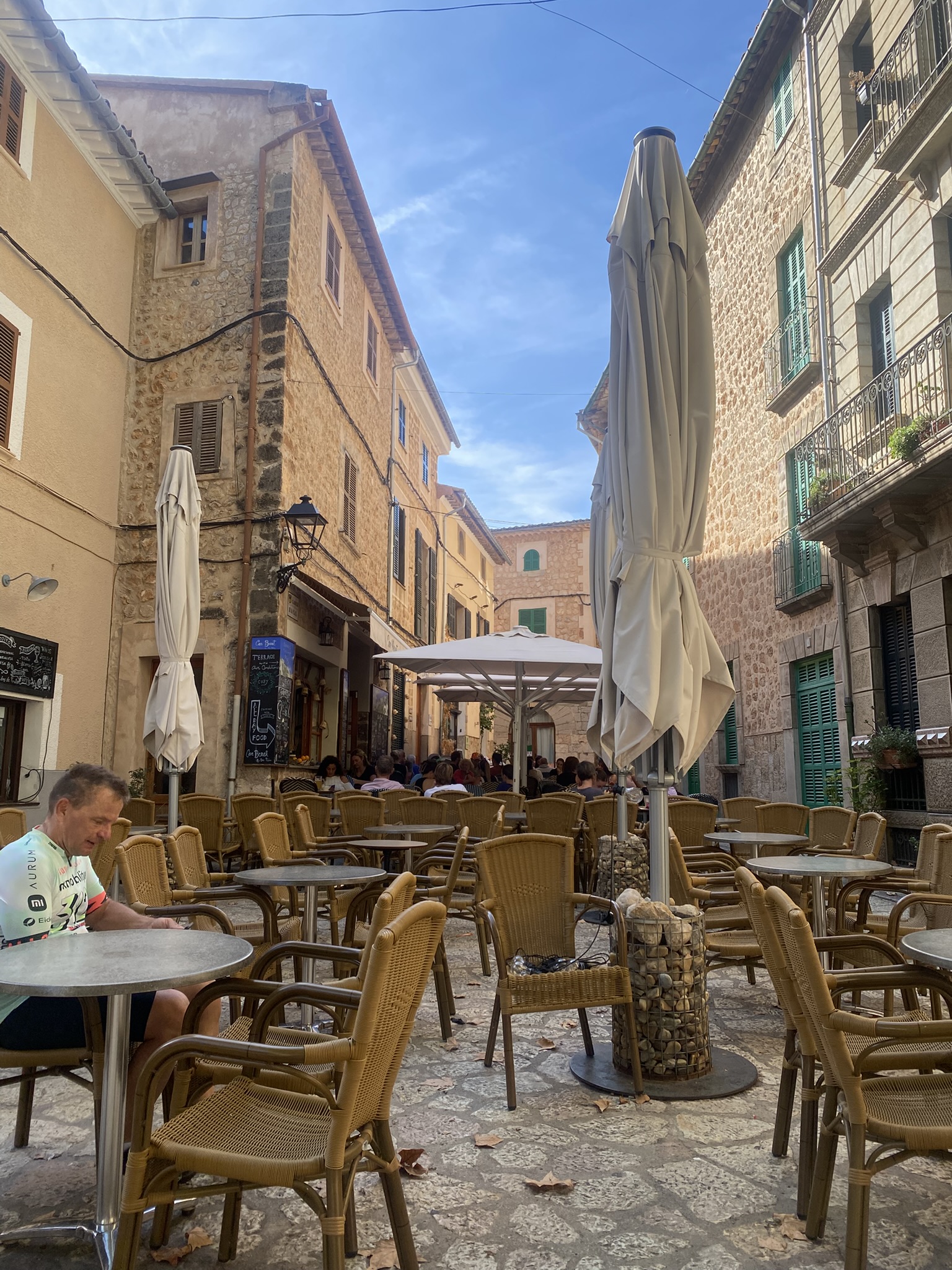 Wir beschließen, nach Fornalutx zu wandern. Der Weg dauert etwa zwei Stunden und führt uns durch wunderschöne Berglandschaft. Immer wieder werden wir von Teilnehmern eines Langstrecken-Bergrennens überholt. Irgendwann melden sich jedoch Rücken (bei Coni) und Hüfte (bei mir), also geht’s um 14 Uhr mit dem Zug zurück nach Palma. Zuvor gönnen wir uns noch ein Bier auf dem Hauptplatz und ein traditionelles Orangen-Eis – geschmacklich eher durchschnittlich.