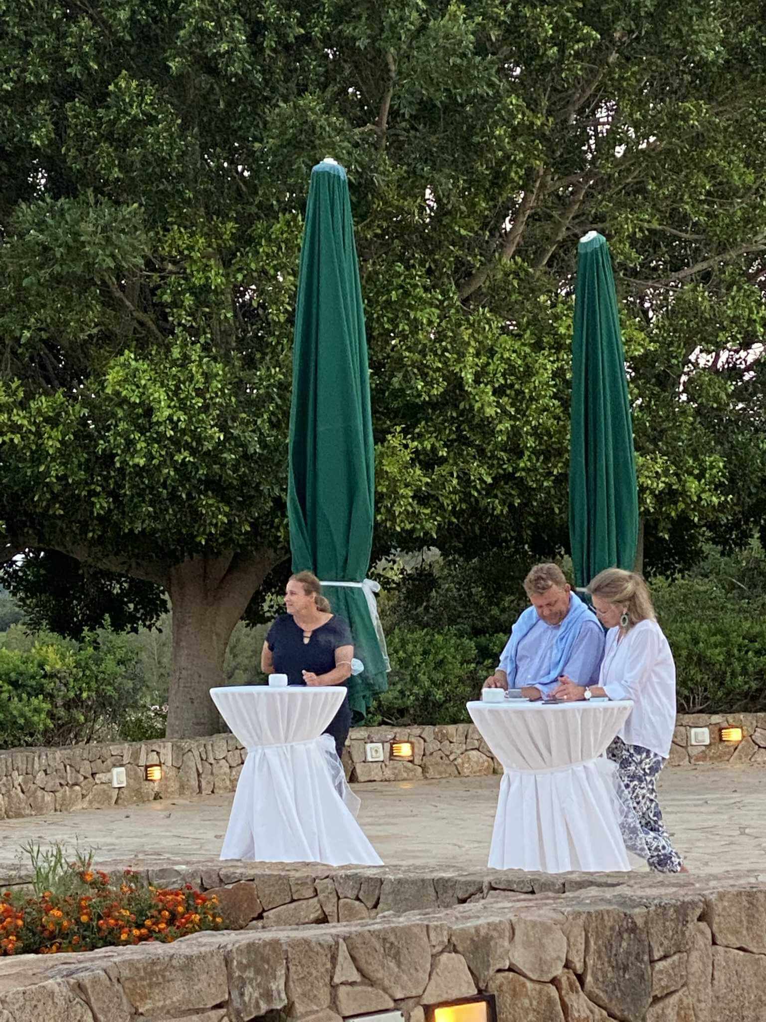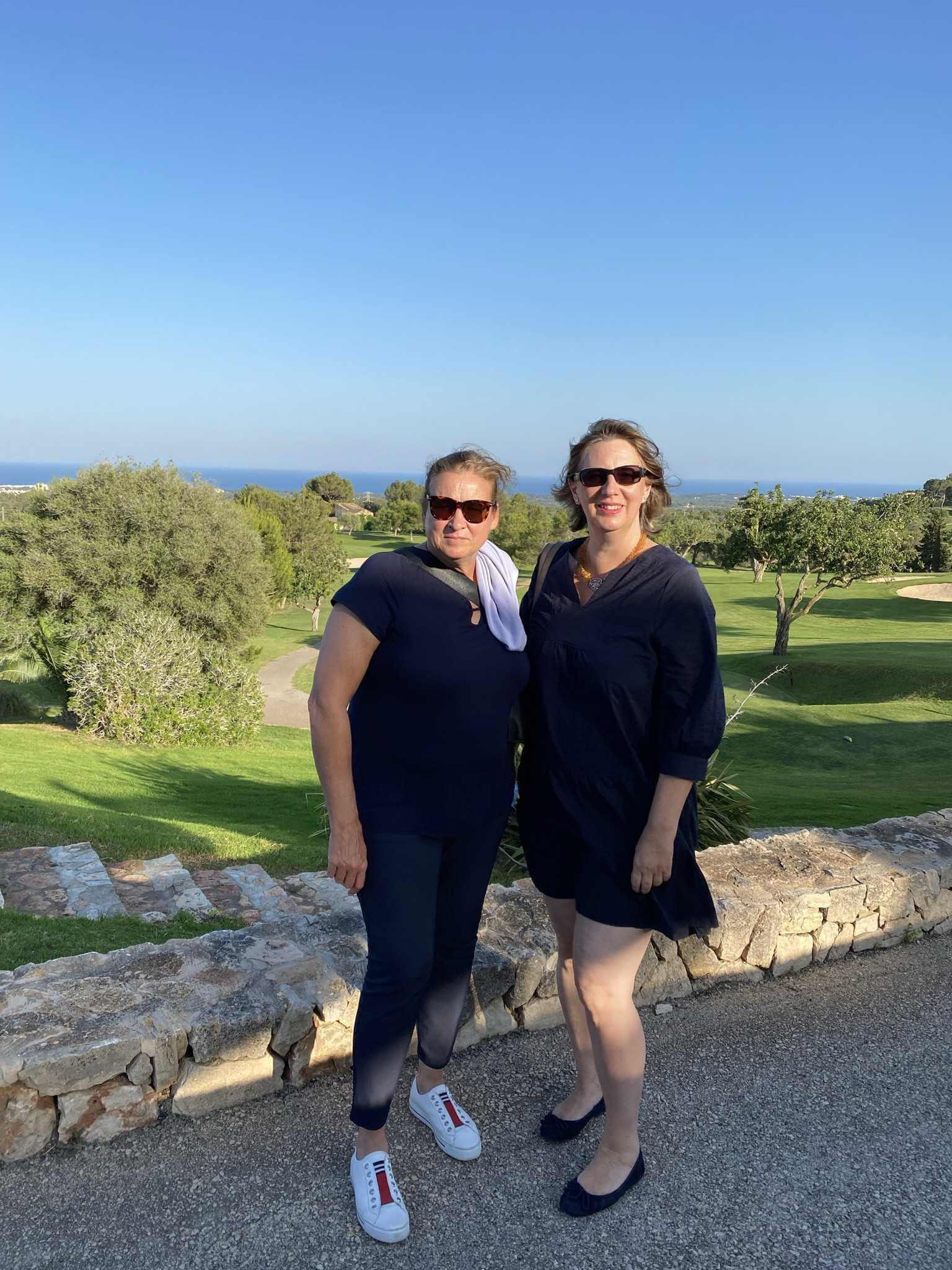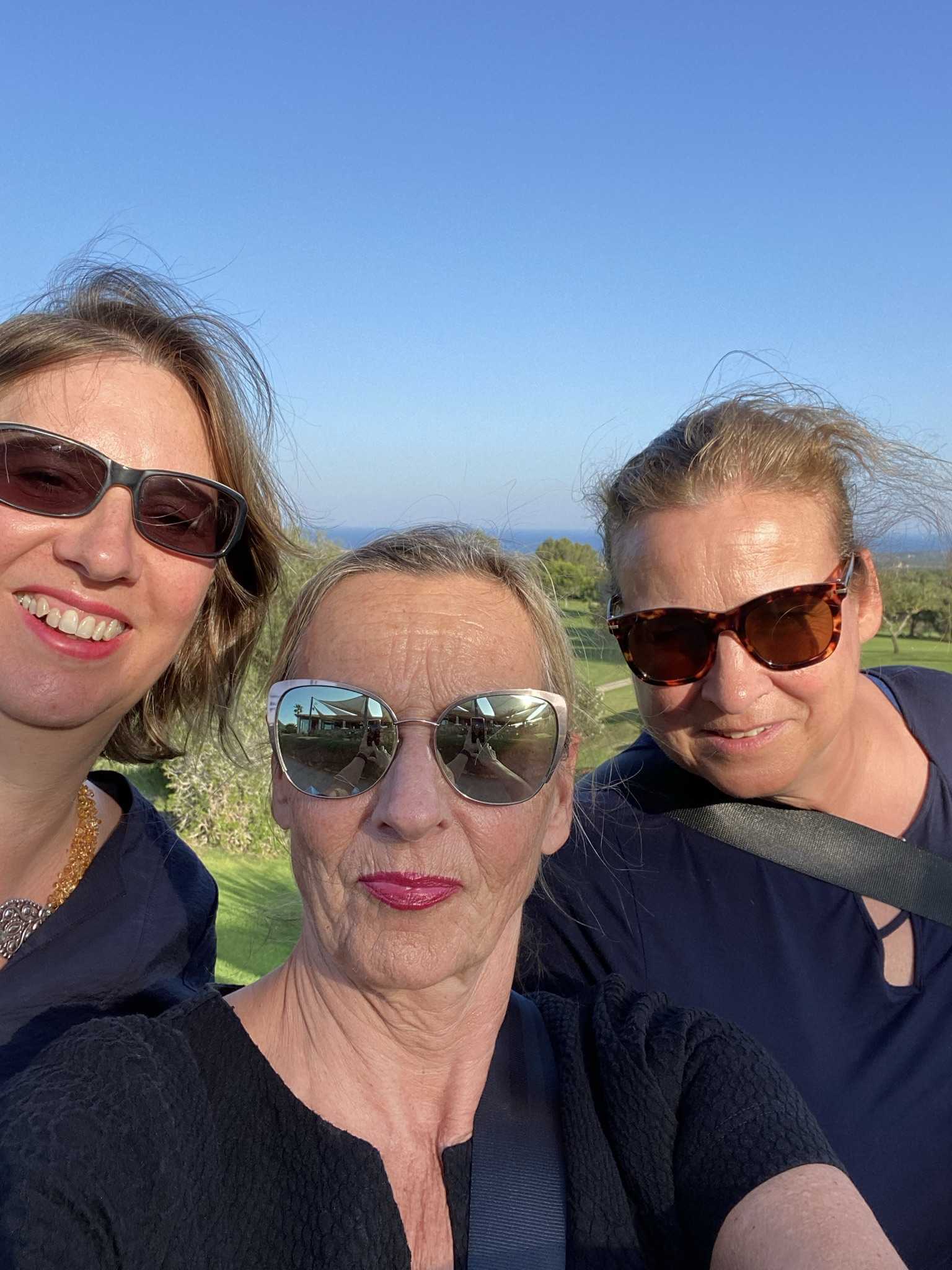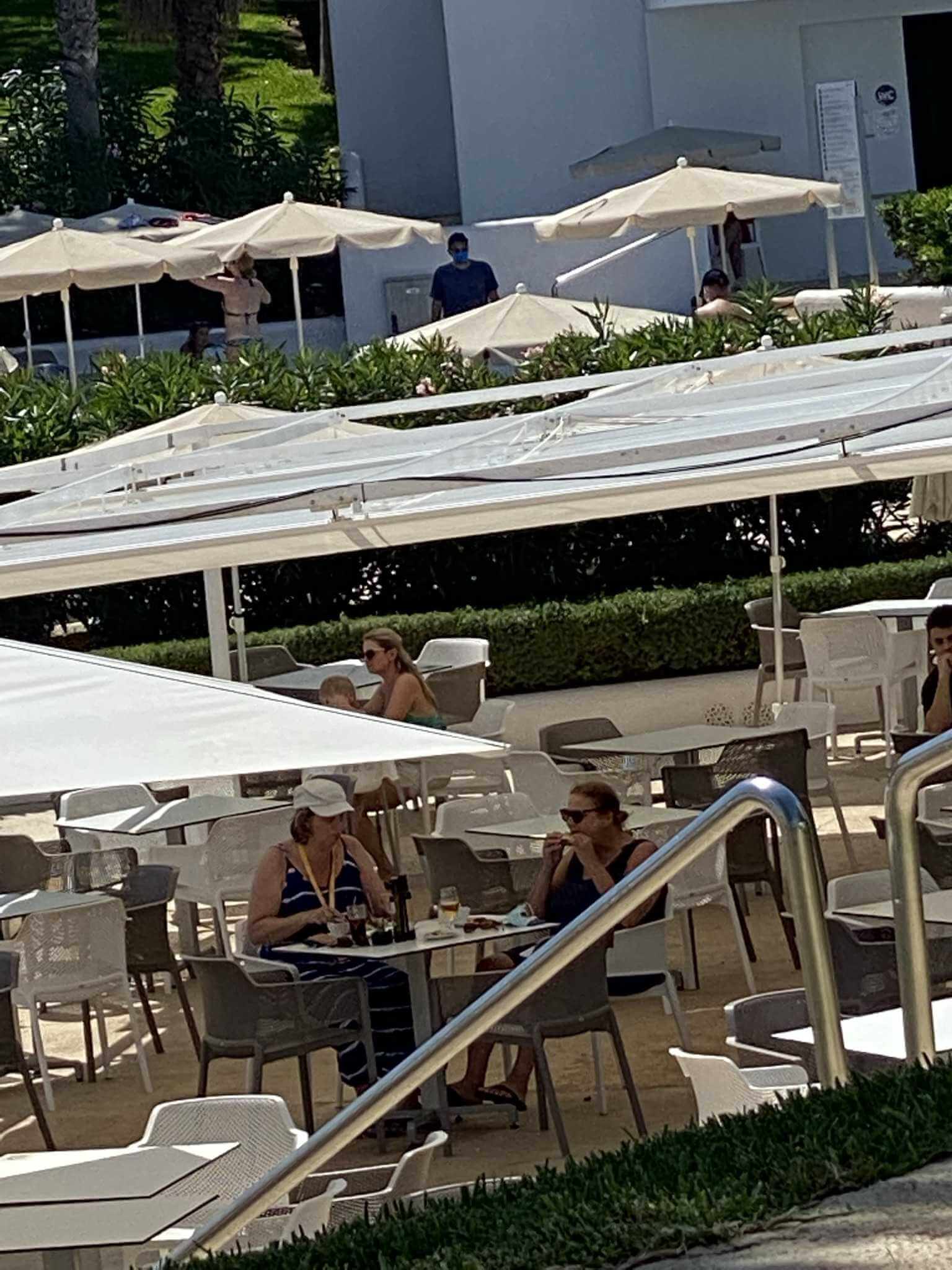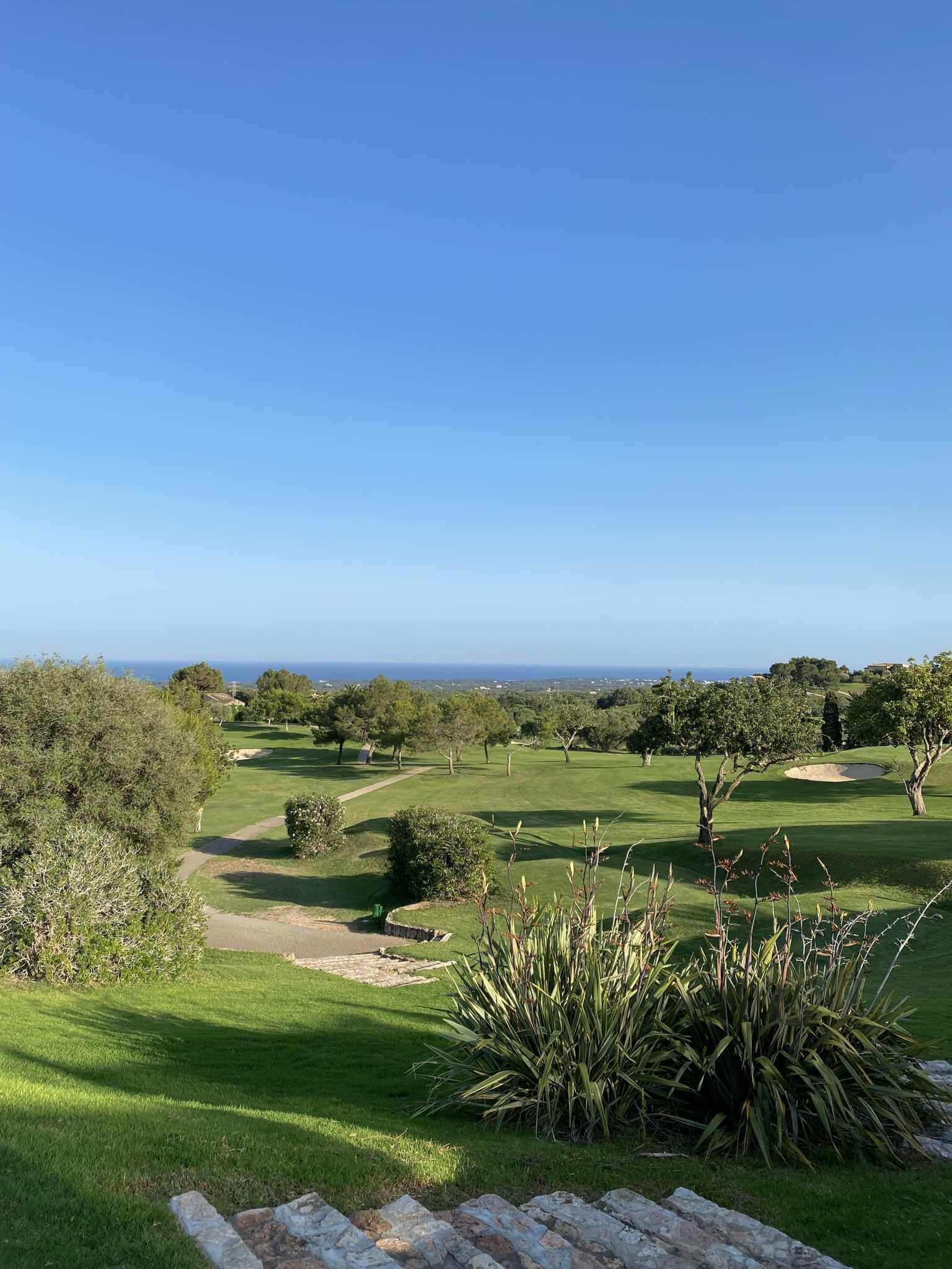 Zum Geburtstagsabendessen geht es ins Restaurant Maxime am Golfplatz. Dort essen wir ganz lecker auf der Terrasse mit herrlicher Aussicht auf die letzten Bahnen und das Meer.