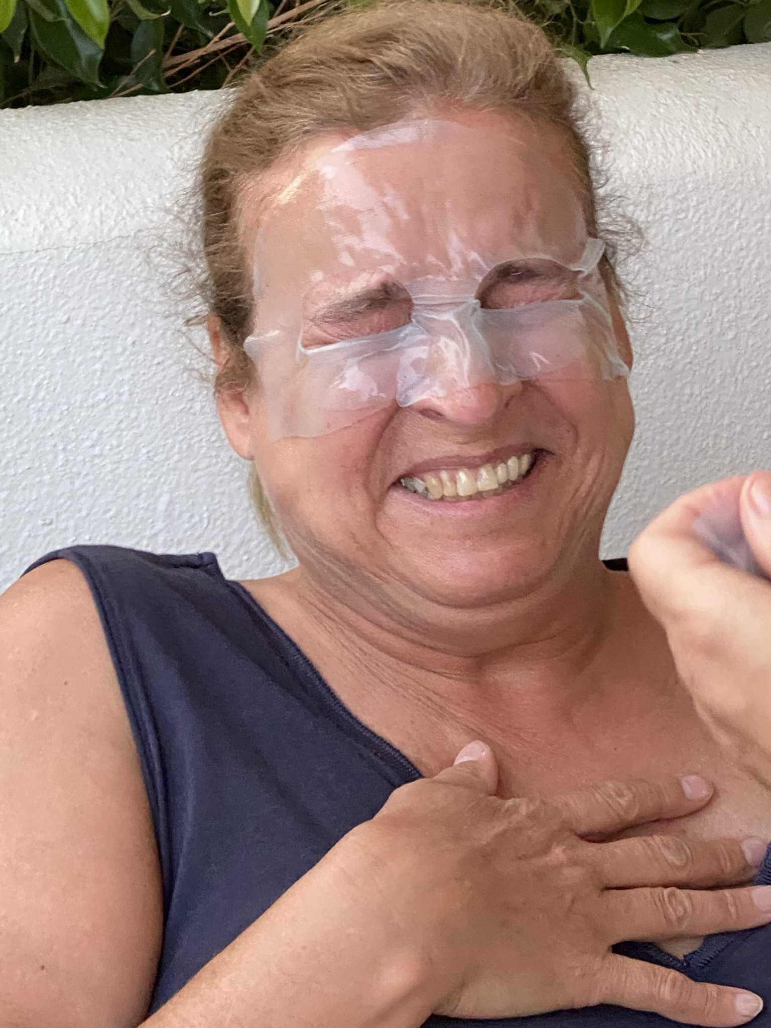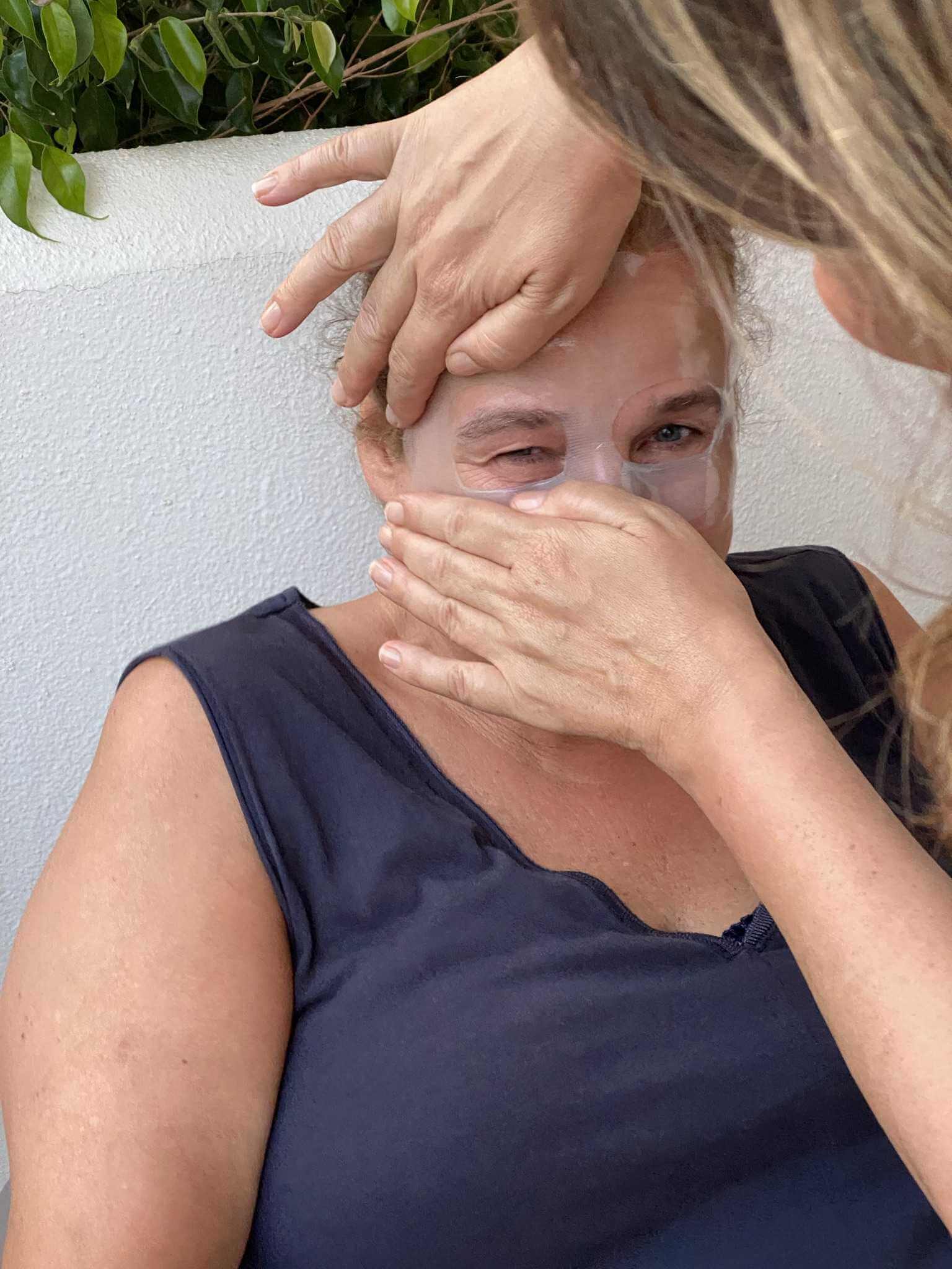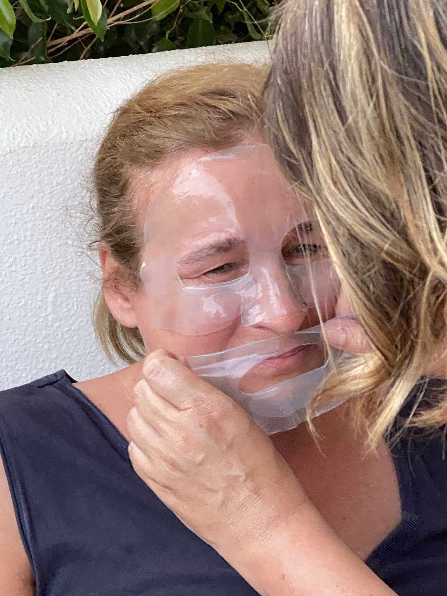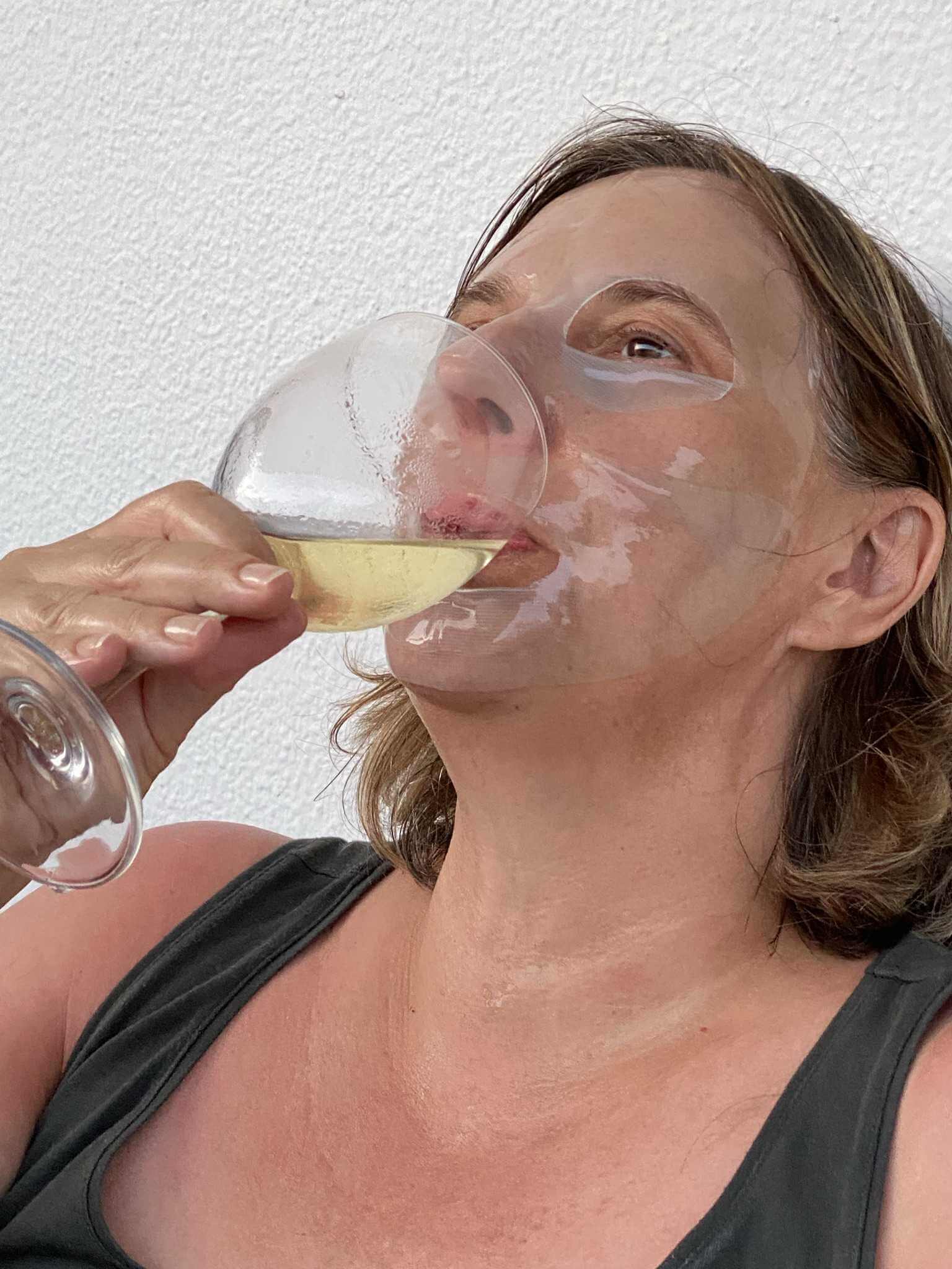 Die Trägheit bleibt heute bei uns, deswegen beschließen wir den Abend mit einer wunderbaren Feuchtigkeitsmaske auf dem Balkon und einem Gläschen Cava.