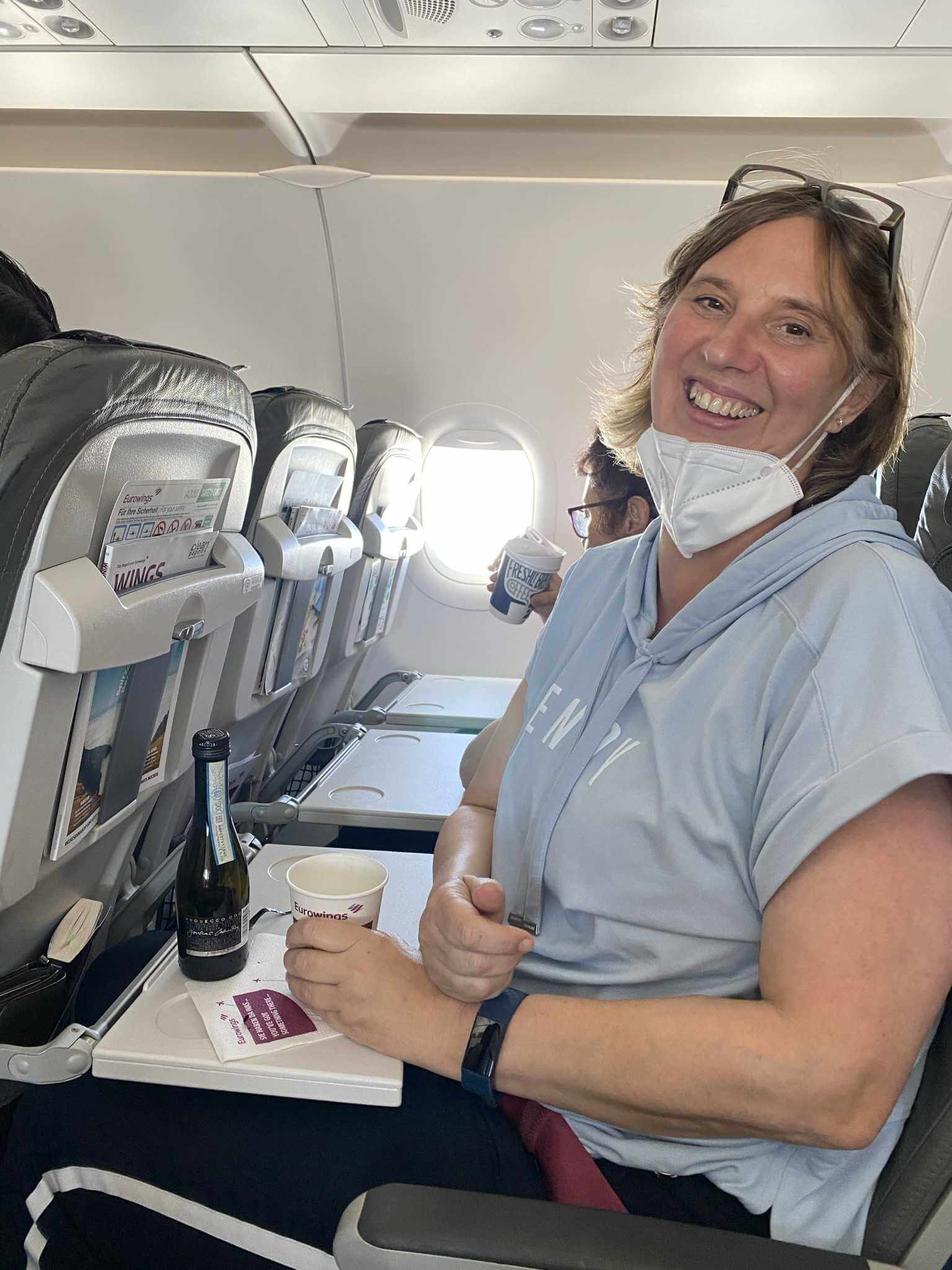 Dieses Mal hatten wir Glück. Unsere Maschine ging pünktlich und war höchstens halb voll. Die Kleinkinder waren offenbar in der fast zeitgleich gestarteten Maschine untergebracht.