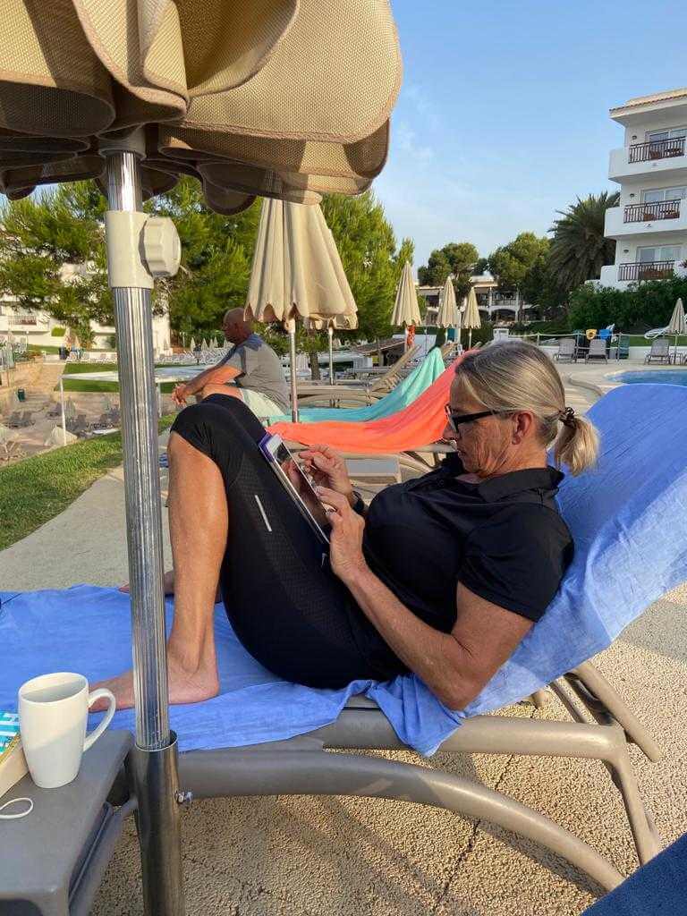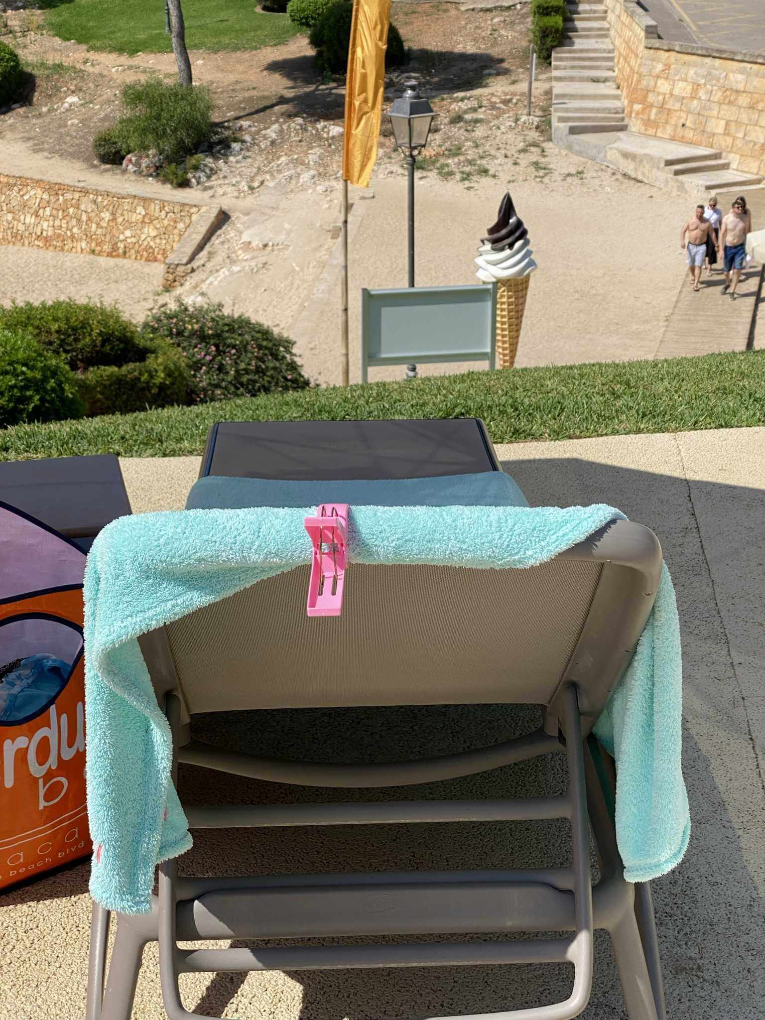 Wir haben einen Strand- und Pooltag. Da die Sonnenschirme am Erwachsenenpool knapp sind mache ich mich mit Manuela schon um 8 Uhr auf den Weg dahin. Wie ein echter Mallorca Tourist sichern wir uns unsere Plätze für den Tag.