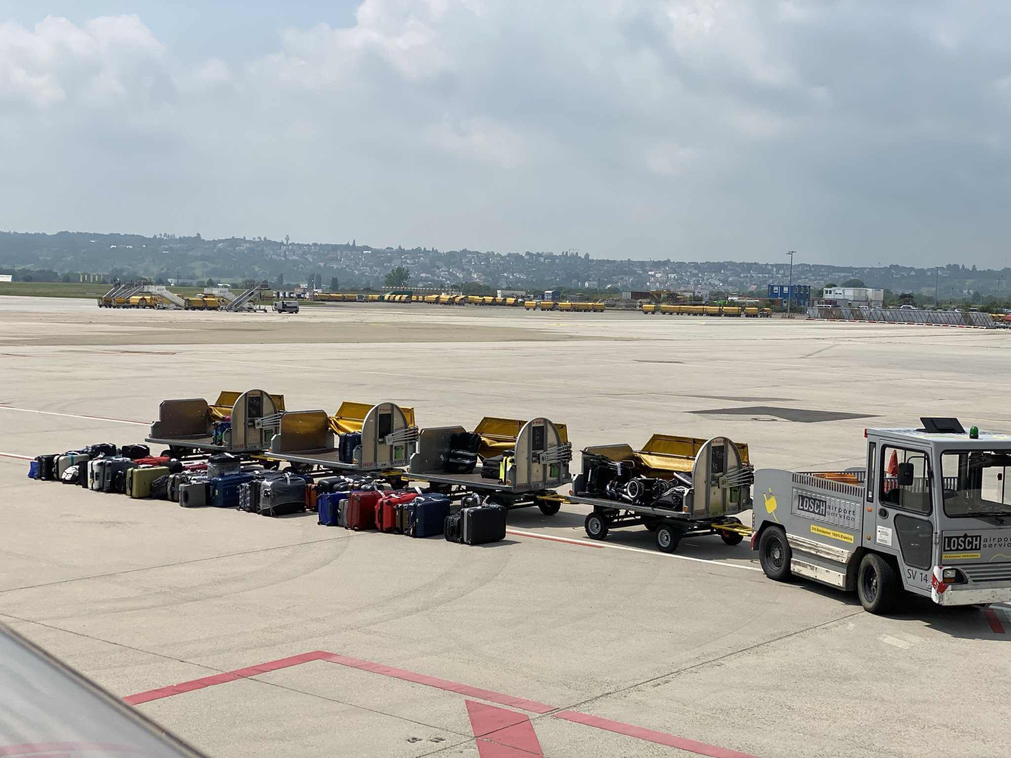 Klar, wir sind pünktlich am Flughafen, geben unser Gepäck ab, passieren den Security Check und essen am Gate noch ein Kohlrabi, damit wir den Gesichtslappen abnehmen dürfen. Ebenfalls pünktlich besteigen wir die Maschine, um dort zu erfahren, dass vier Gepäckstücke zuviel an Bord sind. Nun wird alles Gepäck wieder ausgeladen und jeder Passagier muss sein Gepäckstück identifizieren. Das dauert jetzt. Ein Mann fragt den Flight Attendant , ob er seinen Koffer auch suchen muss, wenn er gar keinen aufgegeben hat…