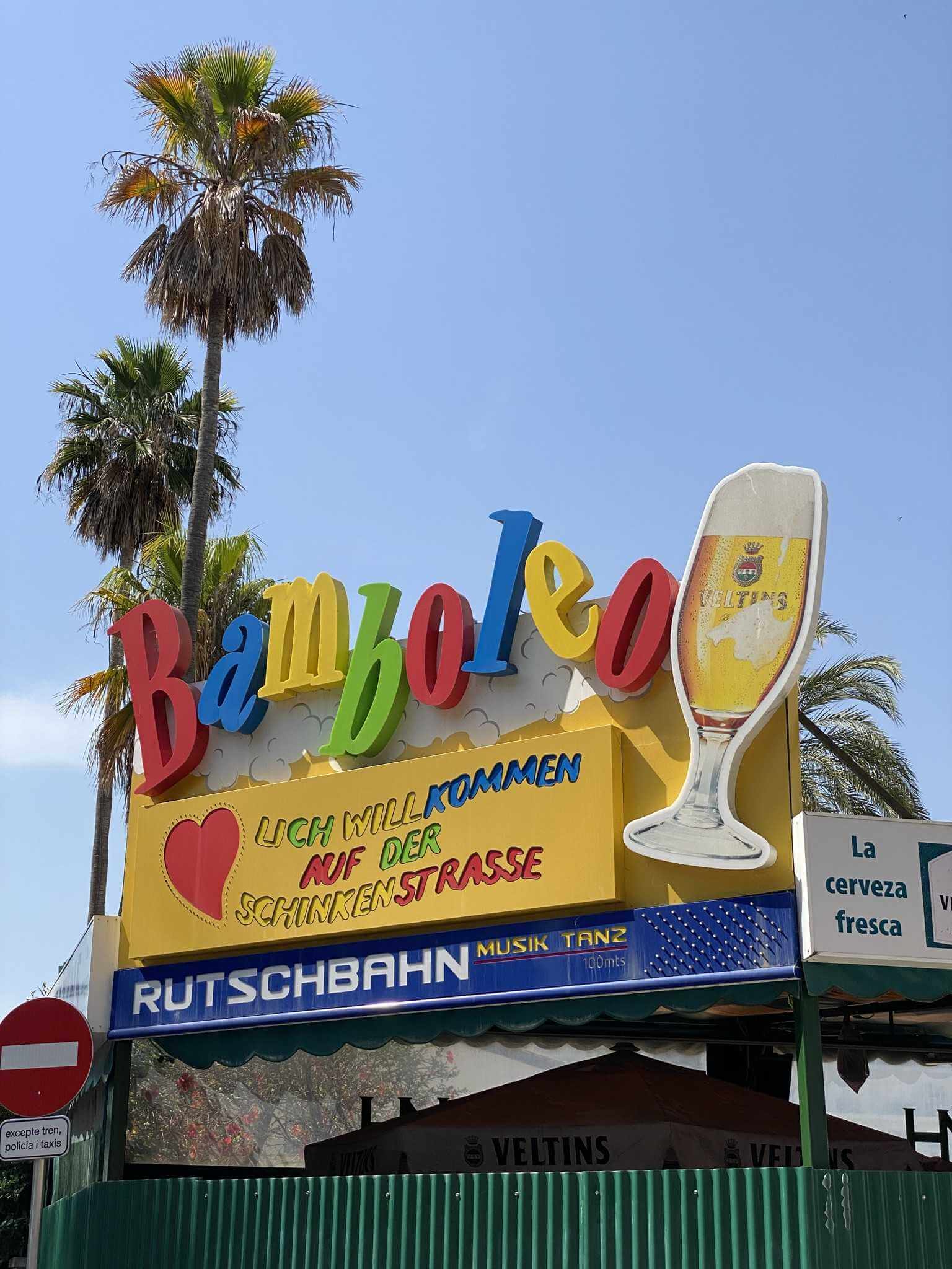 Endlich geht es meinem persönlichen Highlight entgegen: wir fahren Richtung Palma um den Ballermann zu besichtigen. Das Navi schickt uns dauernd Richtung „Platsch di Palme“. Wir parken direkt vor dem Bierkönig.
