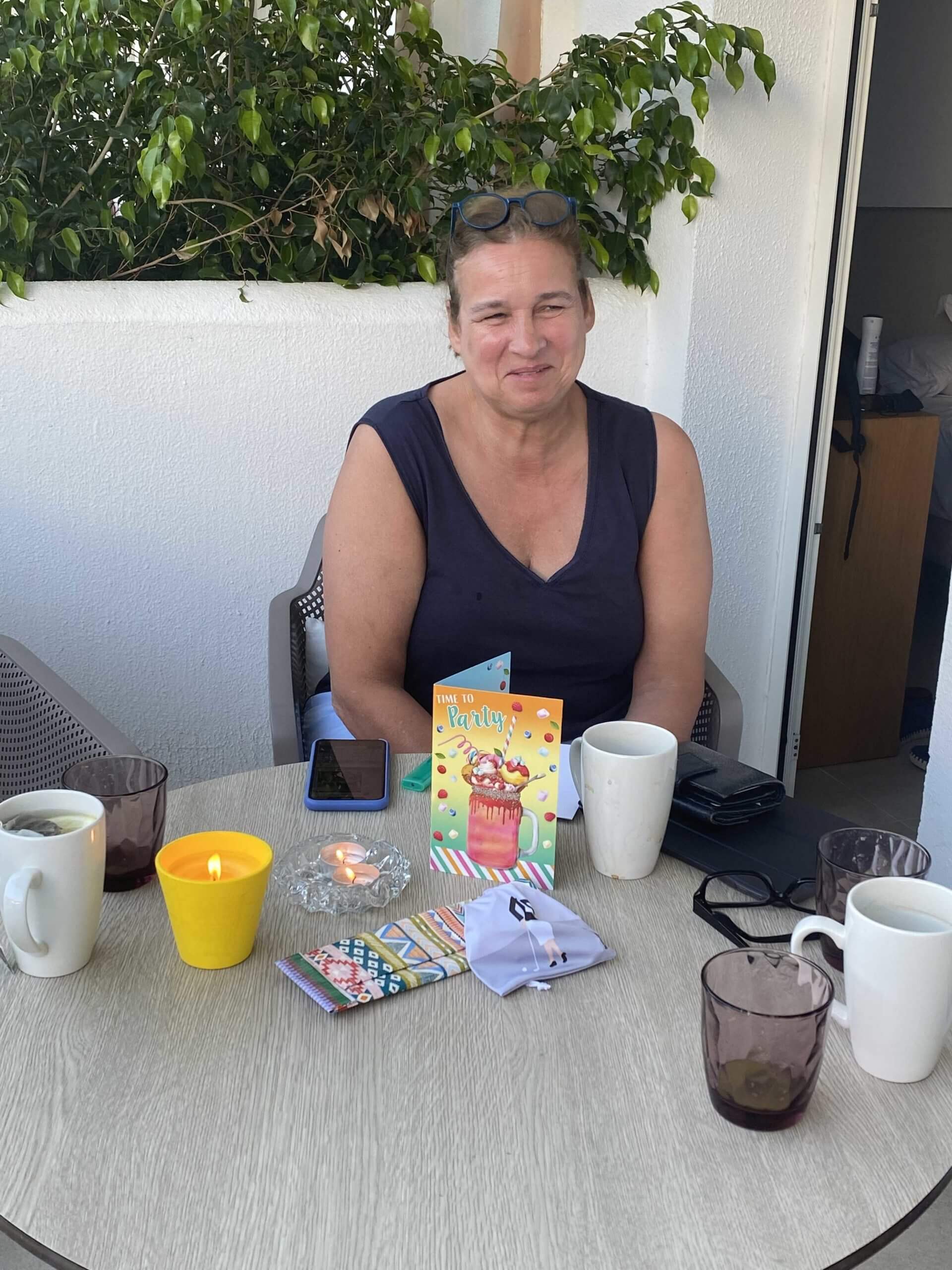 Wie befohlen verhalte ich mich bis 7 Uhr total ruhig. Aber dann wird zum Geburtstagsfrühstück auf dem Balkon mit Kaffee und Saft gerufen.