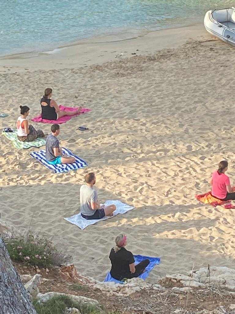 Bereits um 7:15 ist am Strand nicht mehr die sonst übliche Ruhe für den Yoga Kurs. Nein, eine Familie hat sich mit Strandmuschel und Kinderwagen bereits ihren Platz am Wasser gesichert.