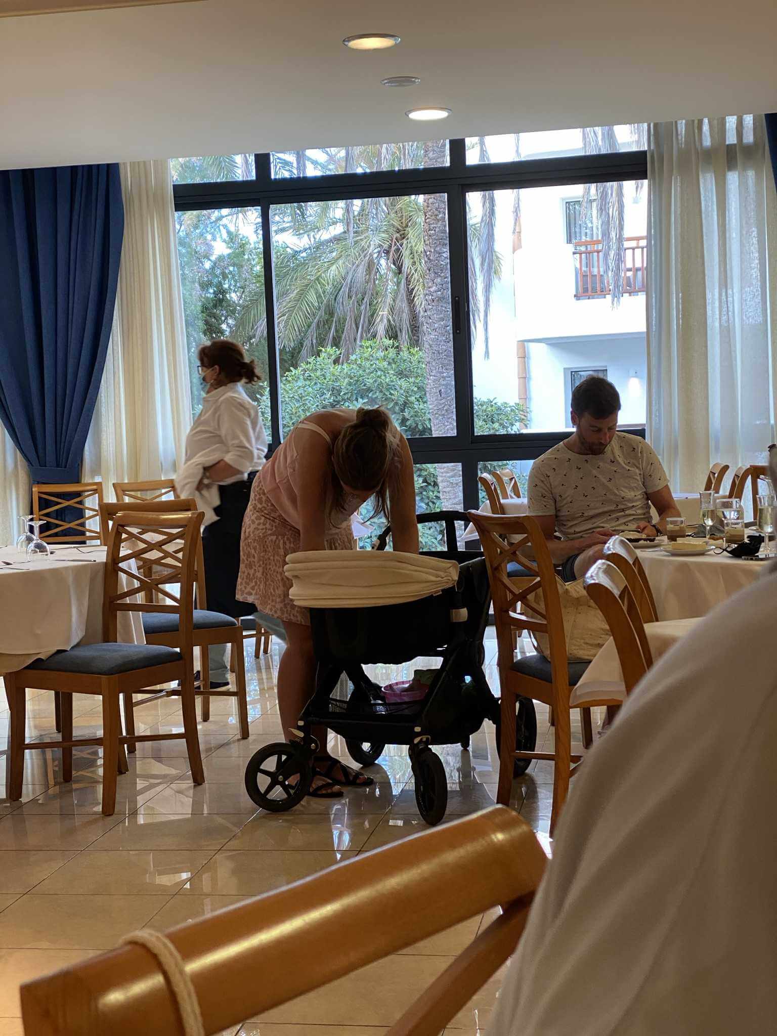 Gerne möchte ich noch ein paar Worte zu unserem schönen Familienhotel verlieren. Das Motto ist hier „we love families“. Und das merkt man allüberall. Das Hauptverkehrsmittel sind Kinderwagen und in der Kantine sitzt an über 90 % der Tische mindestens ein Balg. Gerne wickelt man die zwischendurch und wenn sie brüllen, einfach T-Shirt hoch, Busen raus und stillen…