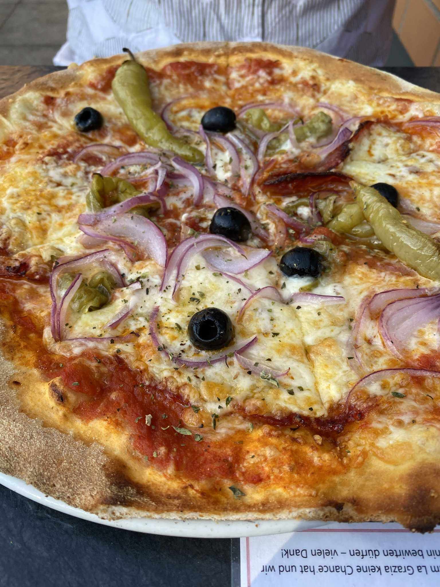 Moni und ich gehen noch auf eine leckere Pizza ins La Grazia. Dort darf ich noch einmal meinen Antigen-Test von gestern zeigen. Nun hat sich der auch gelohnt 🙂