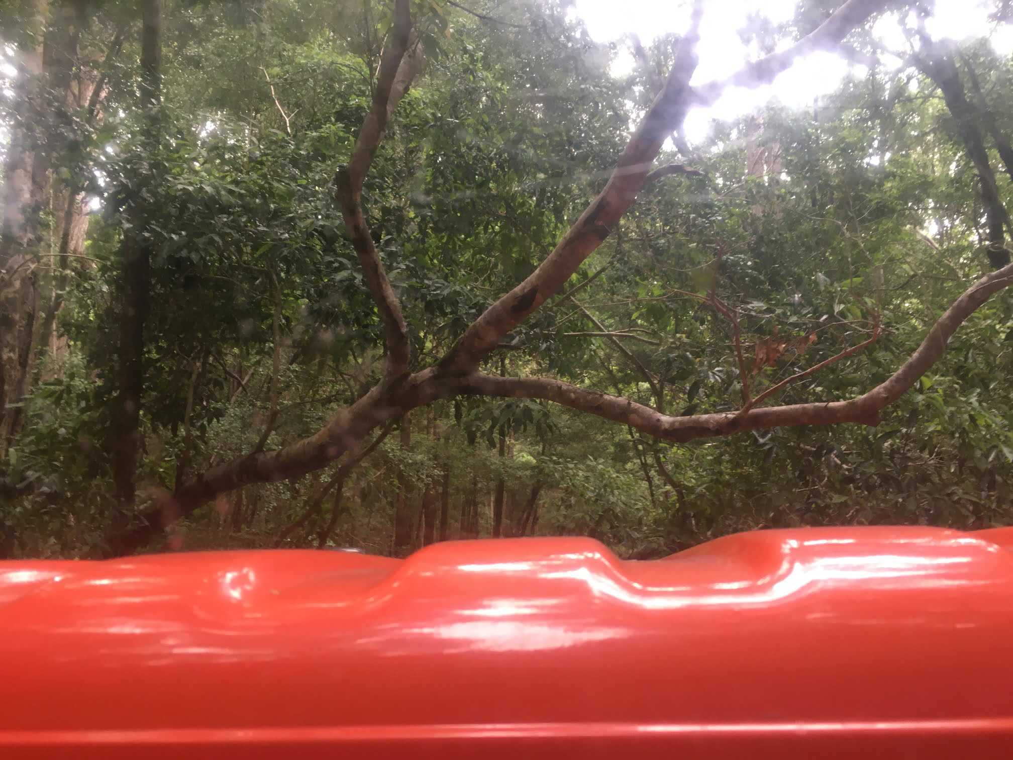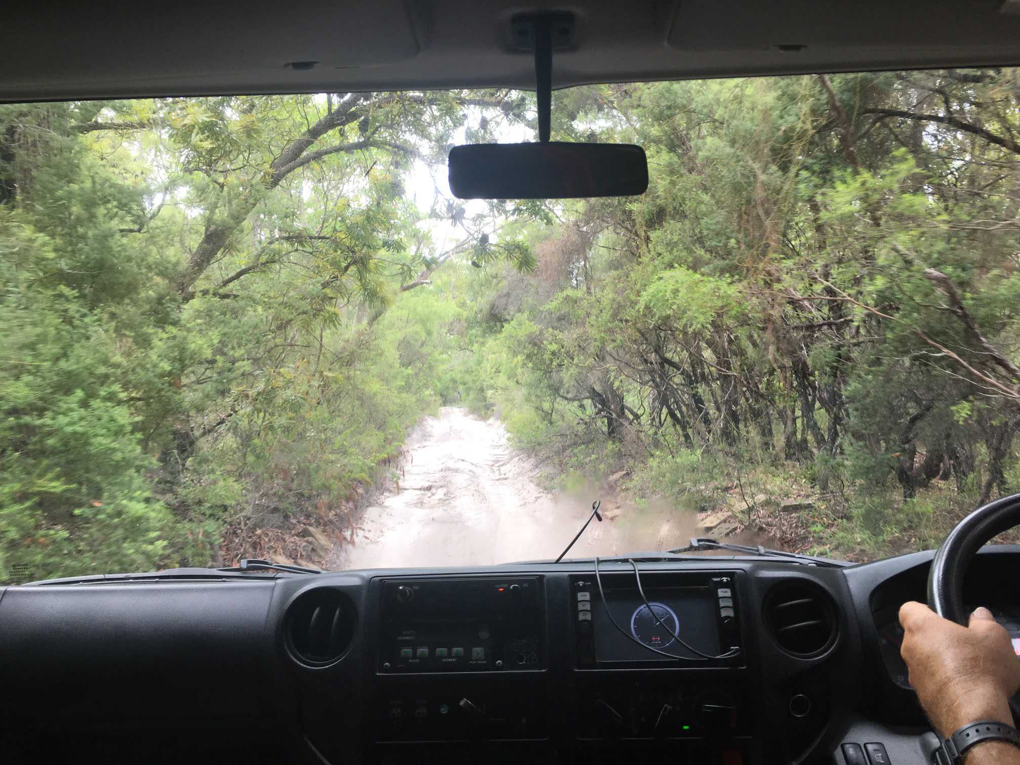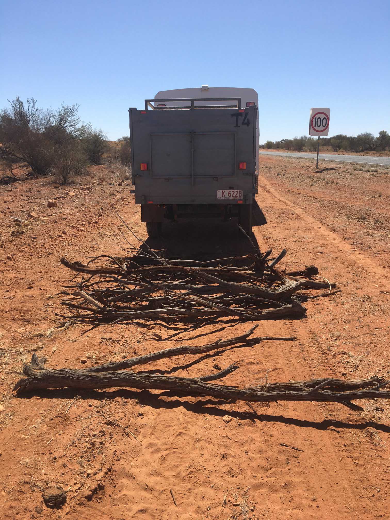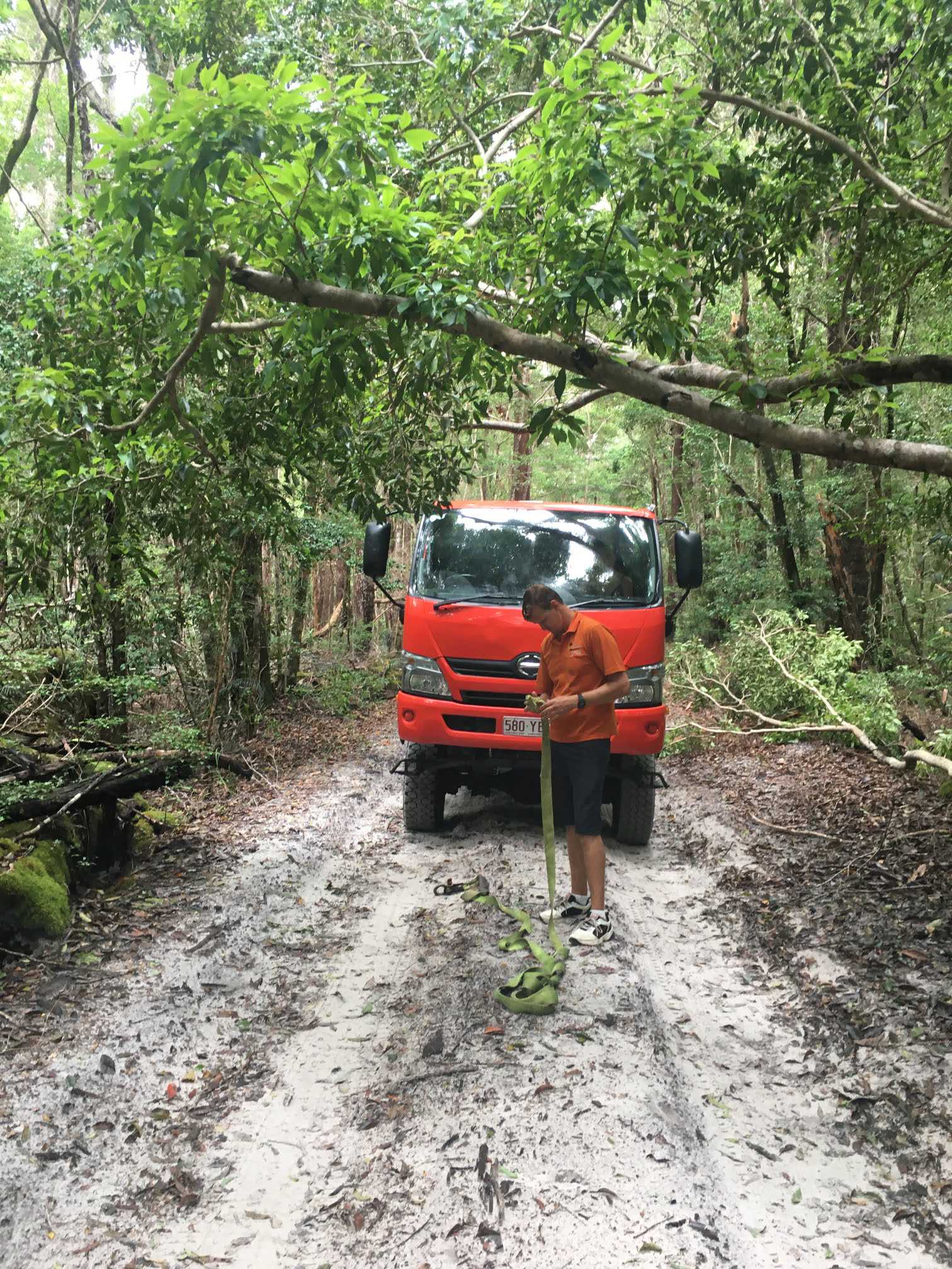 Dicke Äste die über unseren Weg – durch den Zyklon- hingen und unsere Air Condition zerstören können hätten, wurden einfach mit dem Seil, welches am Unimog befestigt wurde, gebrochen und dann von Schnurri & mir zur Seite getragen. Unsere 3 jungen Lady‘s wagten sich erst dann aus dem Truck, als alles erledigt war.