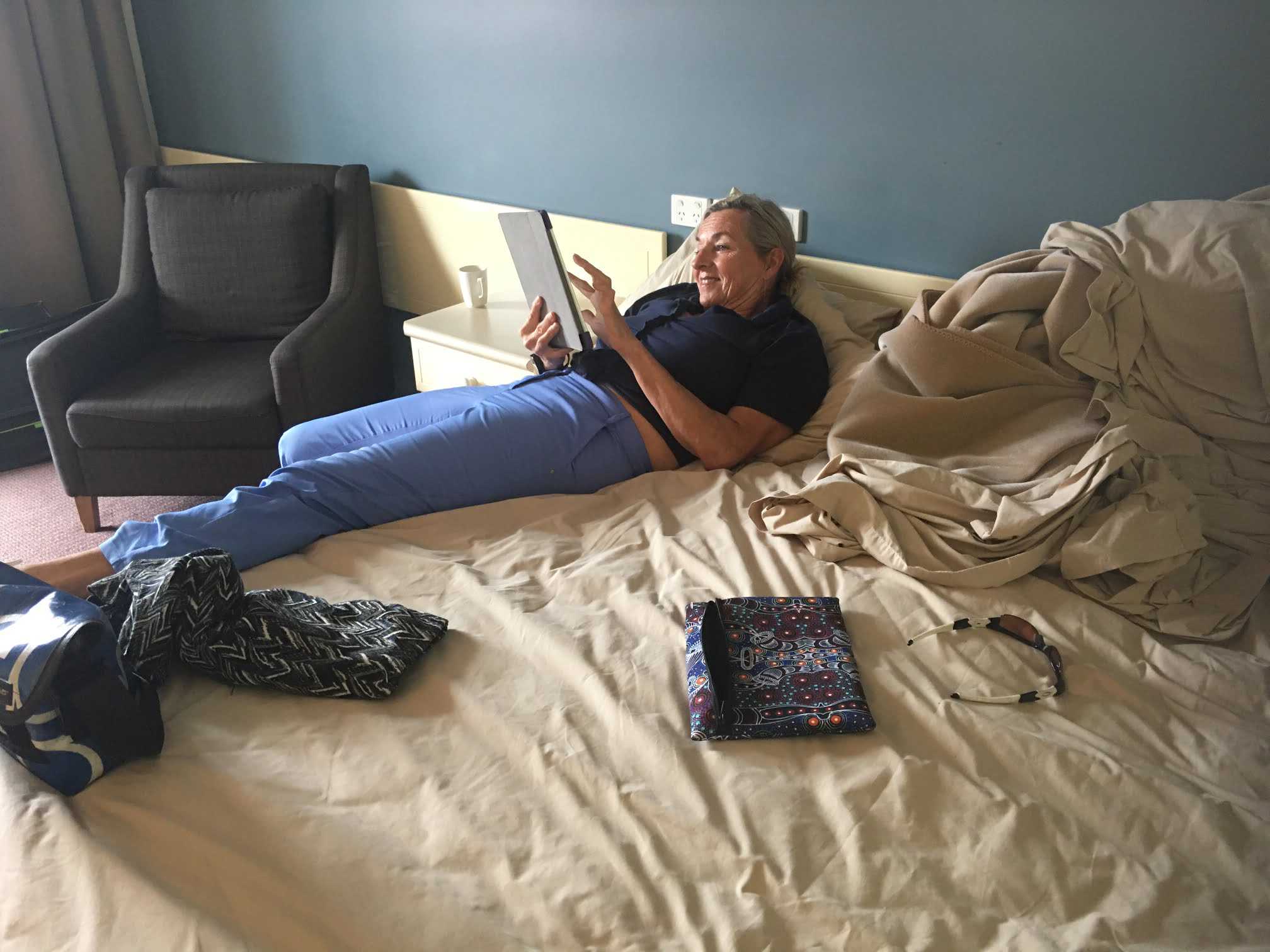 Später im Hotel eingecheckt. So war das nicht geplant: eine Schuhschachtel mit Doppelbett . Wenn einer sich umdreht, wird der andere seekrank. Für morgen hat man uns ein anderes Zimmer versprochen.