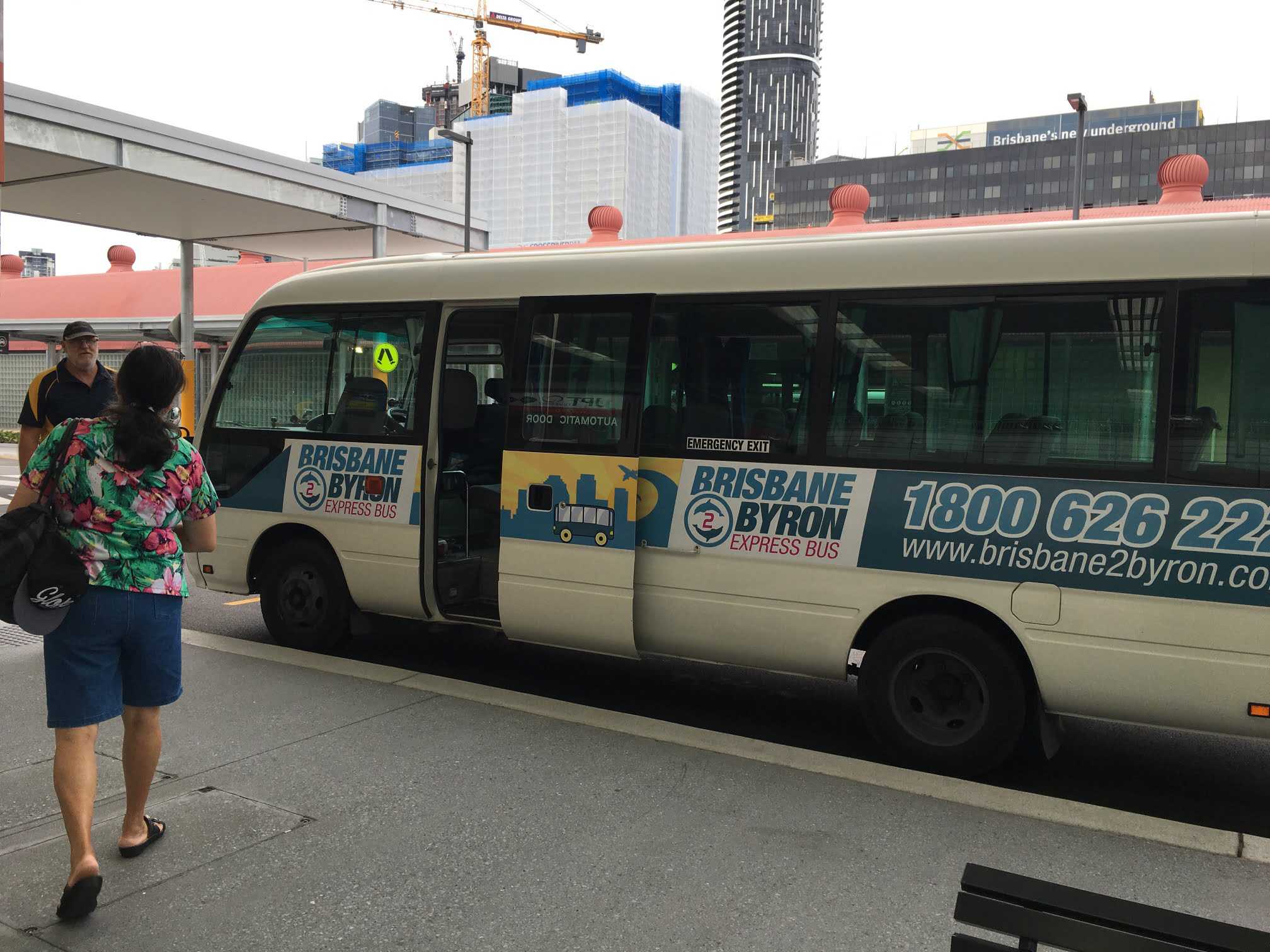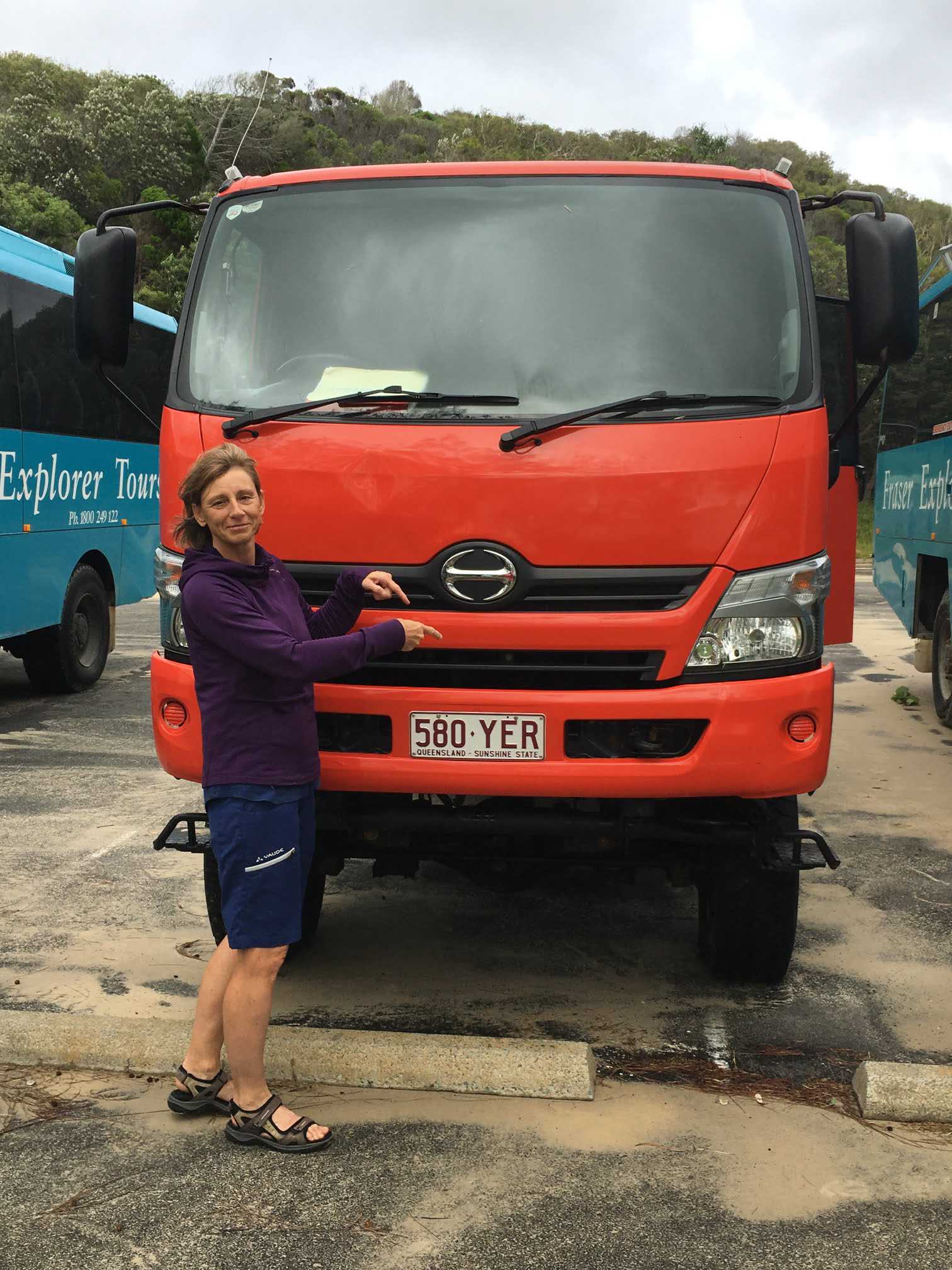 Unser Bus nach Rainbow Beach kam pünktlich. Wie hier üblich, trug der Fahrer eine zauberhafte Uniform – wie ein Schulbub.