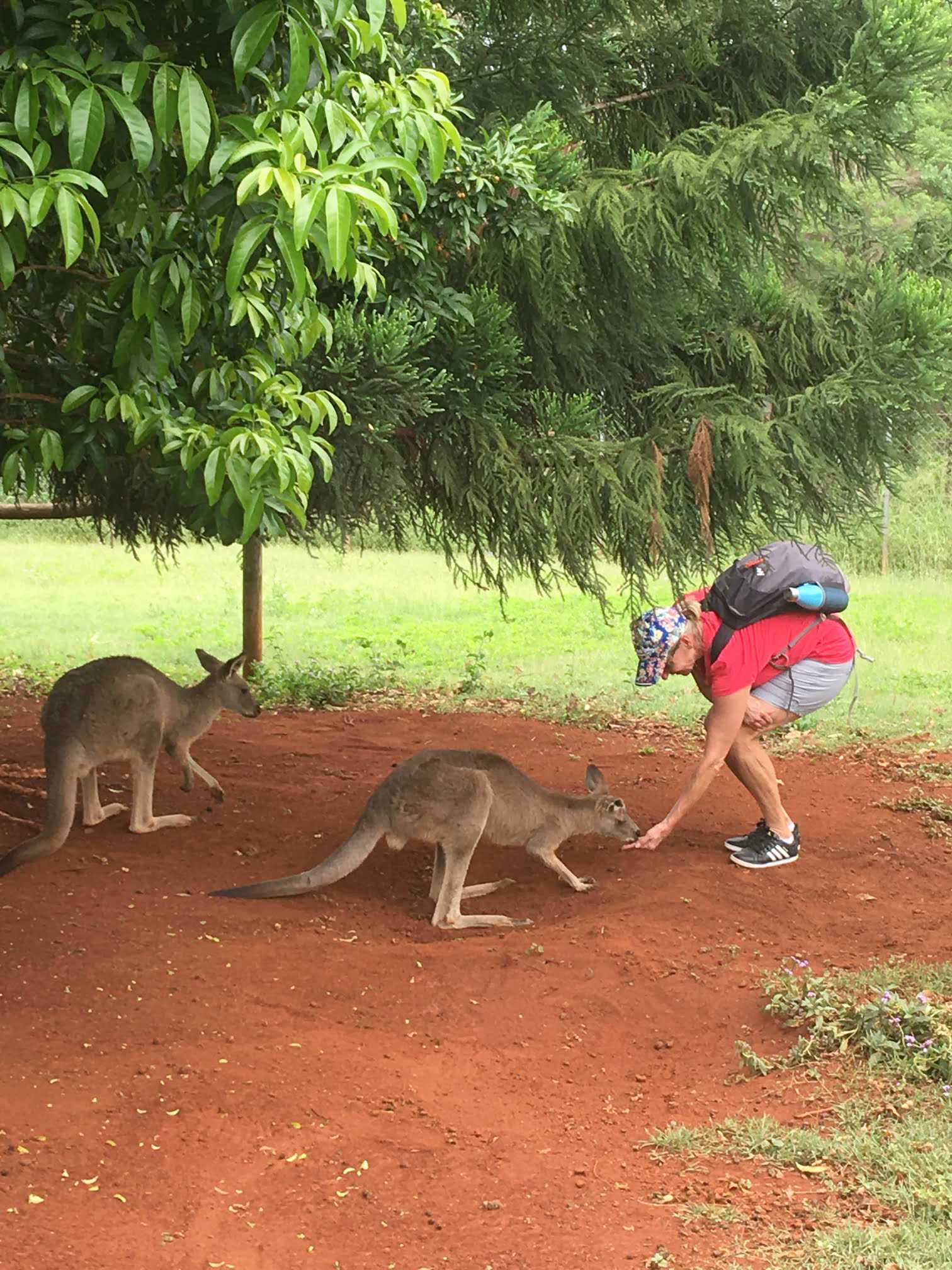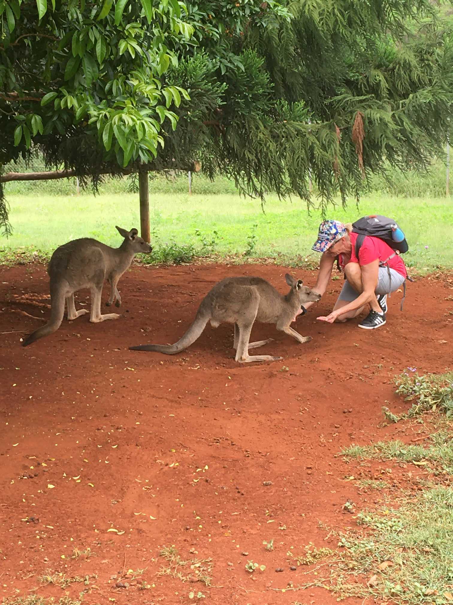 Unterwegs hielten wir an, um die Ohren von zwei wilden Kängurus zu betrachten.
