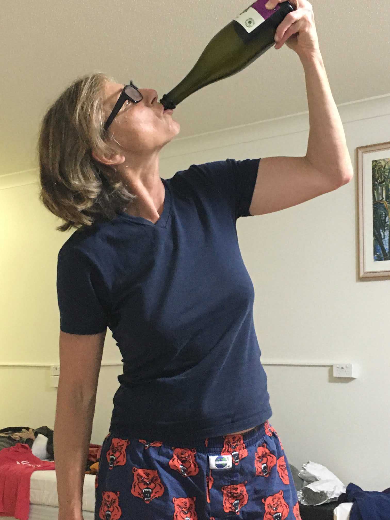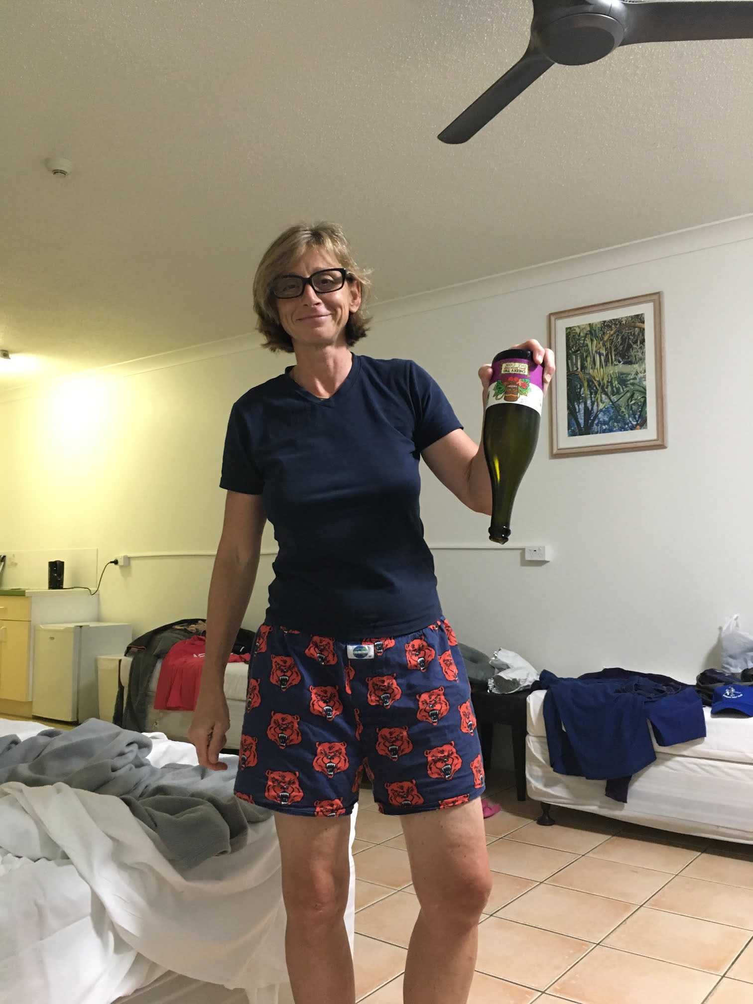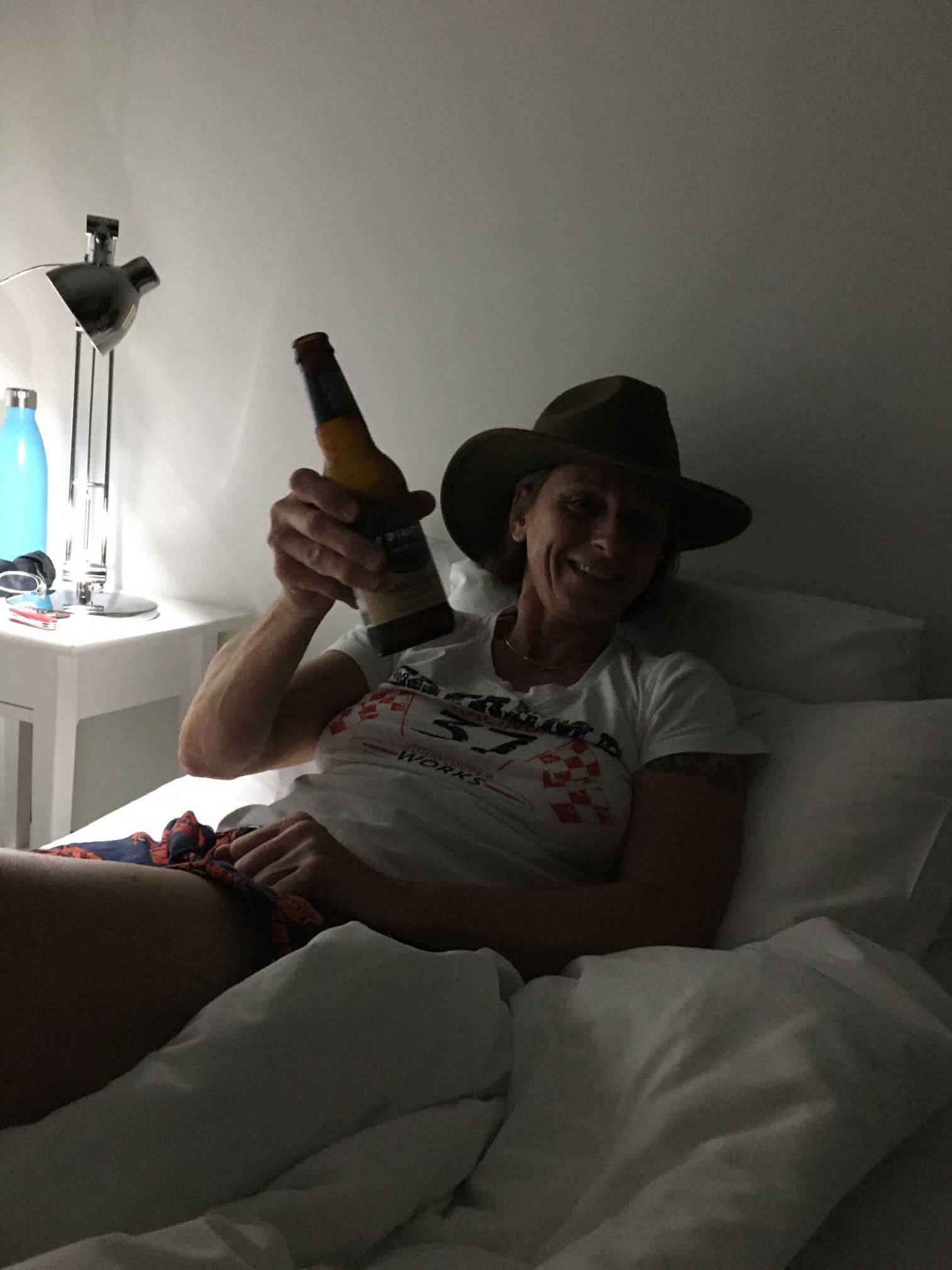 Aber zunächst liegt der echte Aussie mit Hut und Bier im Bett