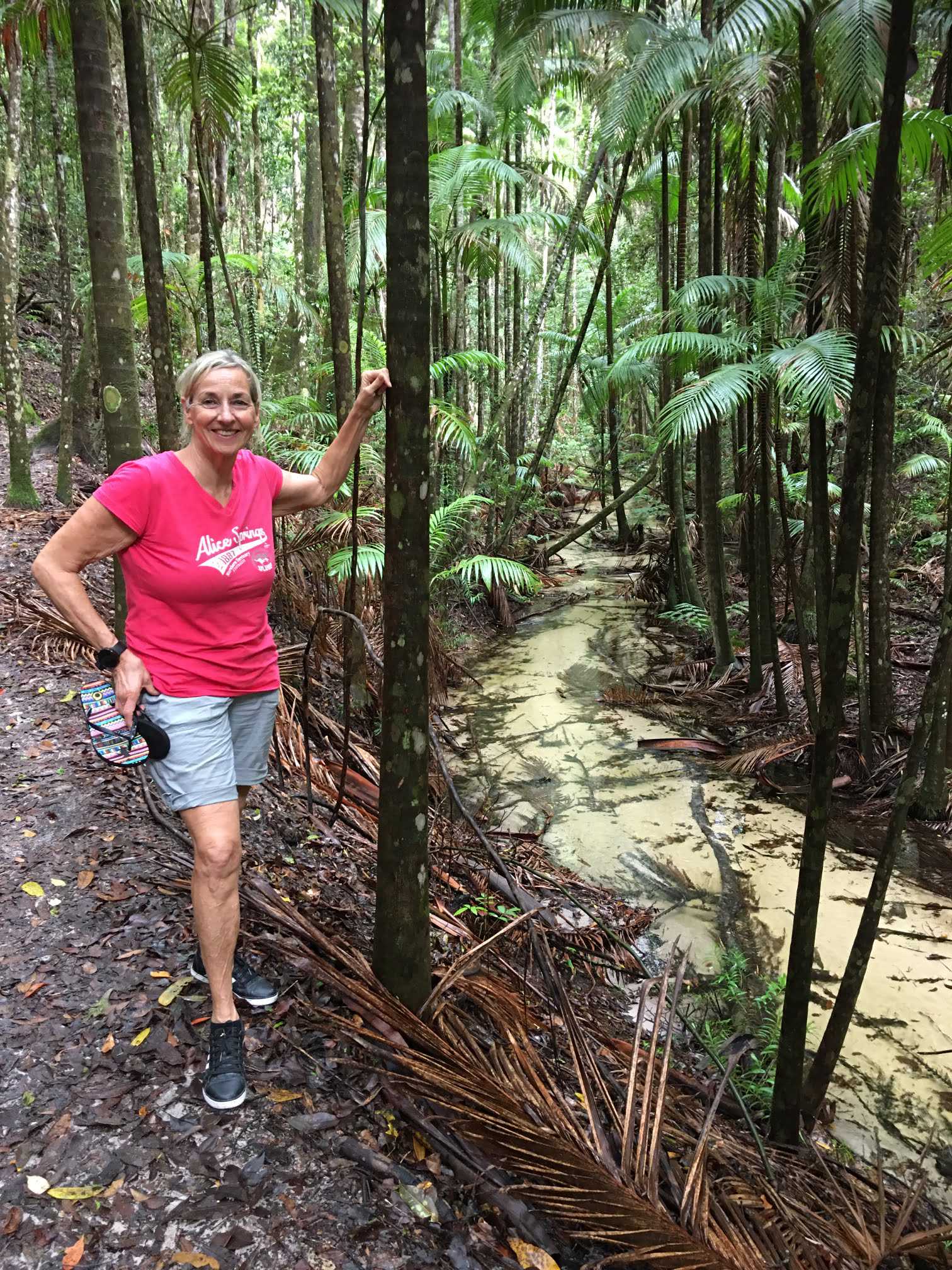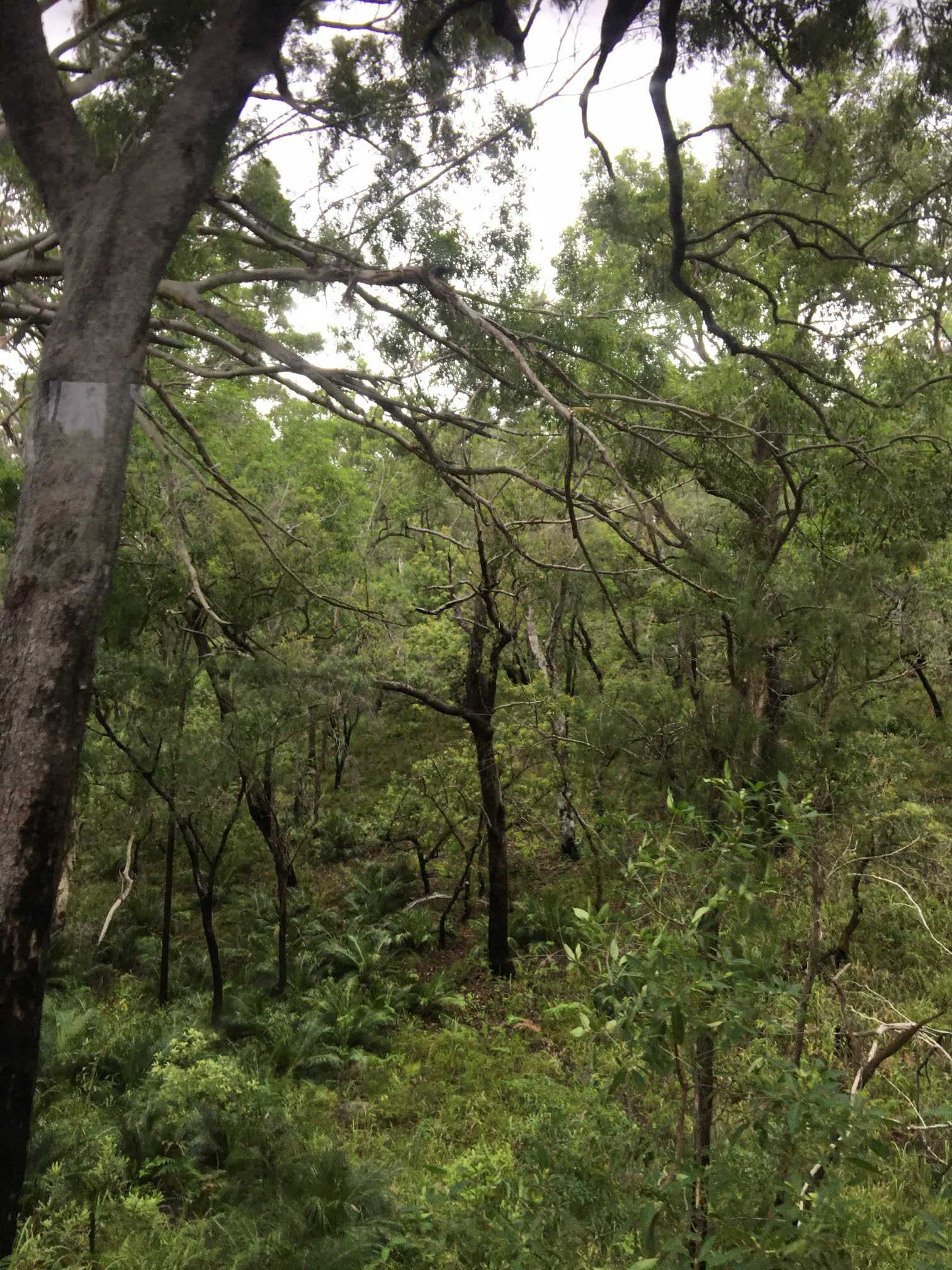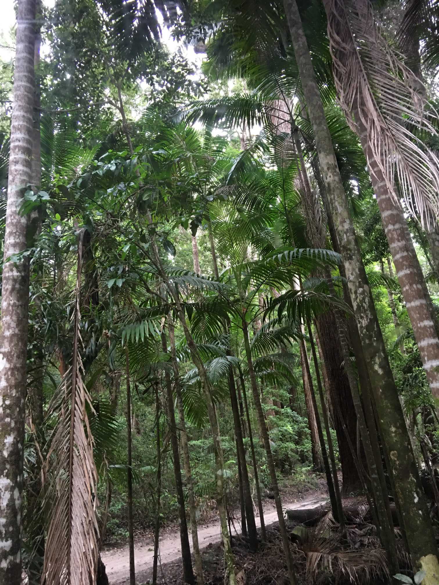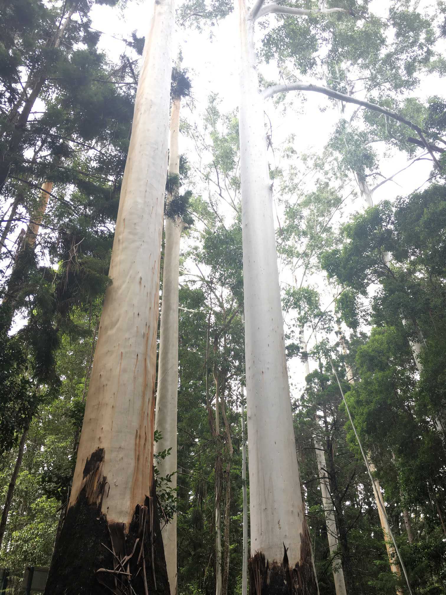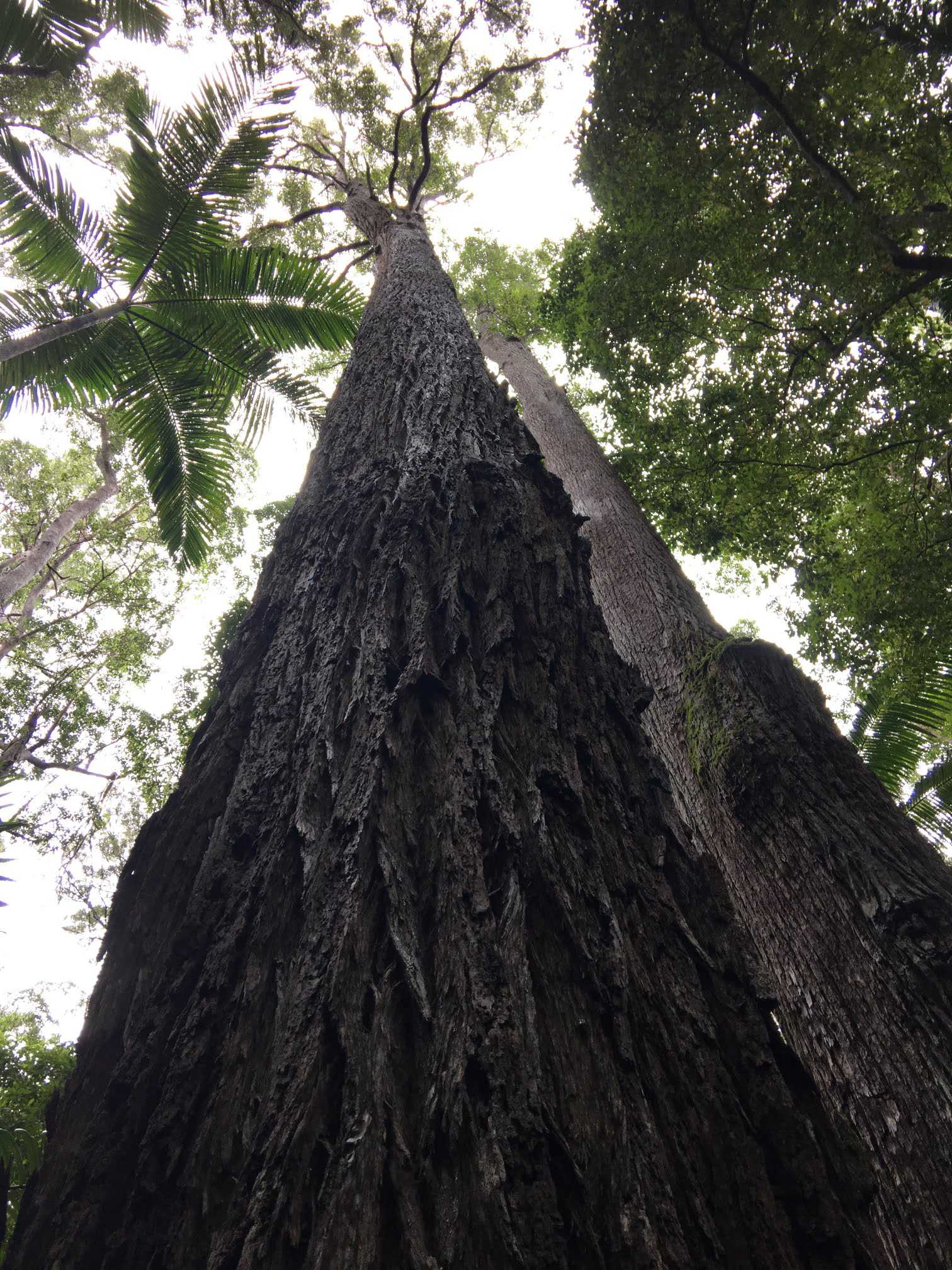 30 Meter hohe Bäume, Eukalyptus die über Hunderte von Jahren alt sind, dazwischen Palmen die ebenso in die Höhe ragen, am Boden Farne und wir ….
