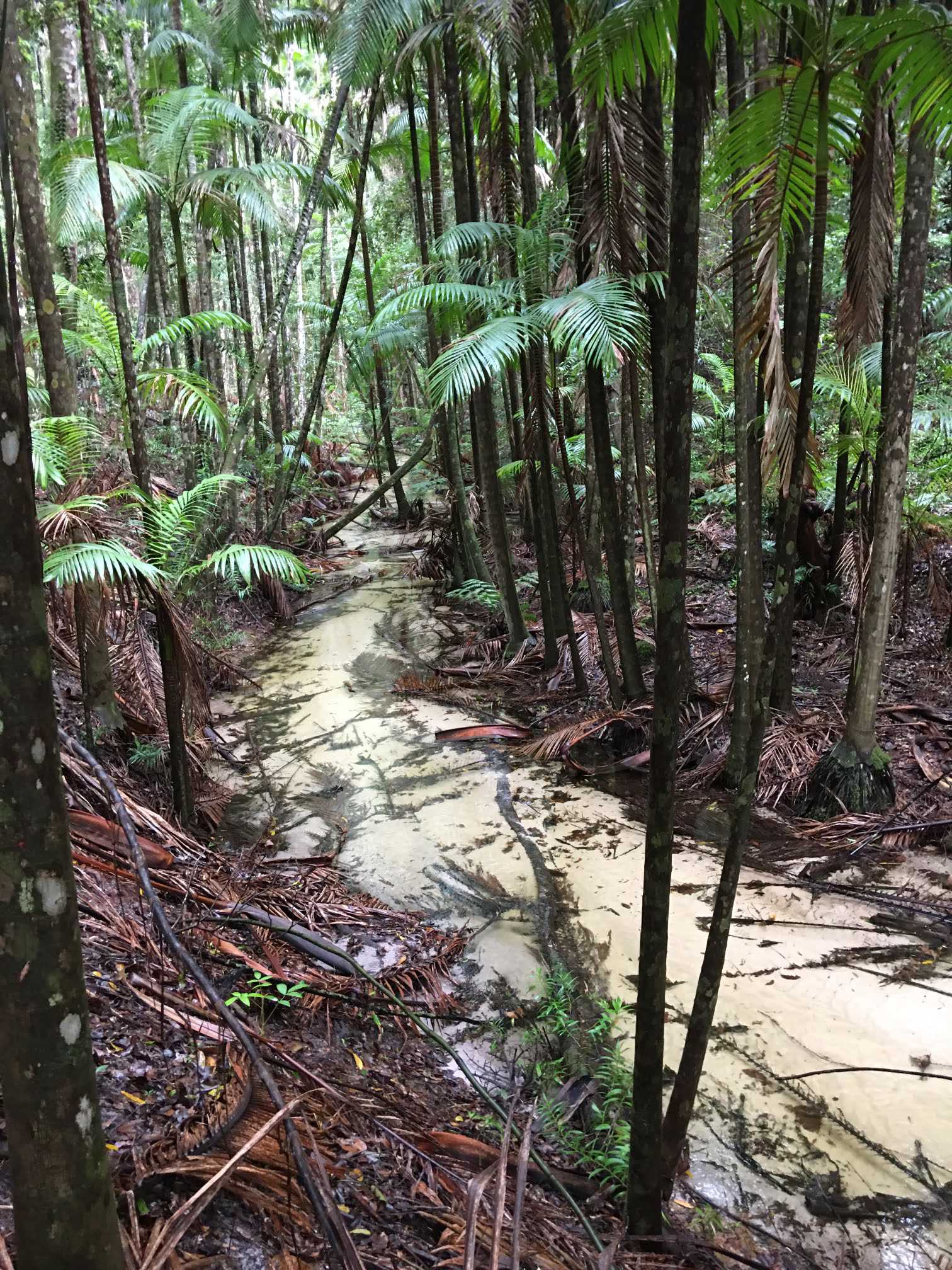 Ein Pfad an einem Süßwasser Flüsschen entlang, wahrscheinlich ein alter Aborigine Pfad.