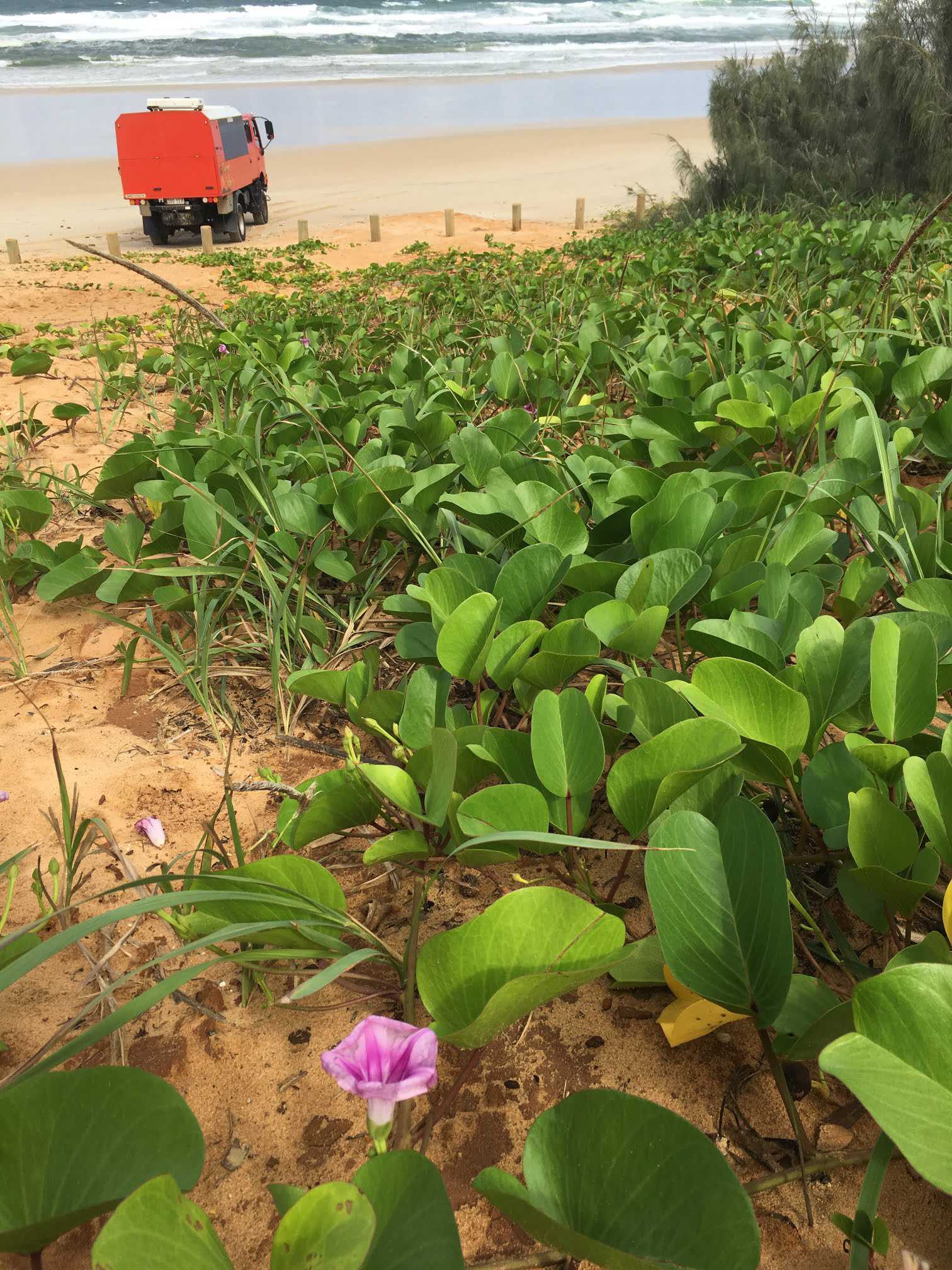 Am Rainbow 🌈 Beach zeigte uns Rhett seine Lieblingsstellen und wir fuhren 50 Kilometer !!! am Strand mit seinem Unimog Panzer, Richtung Noosa.