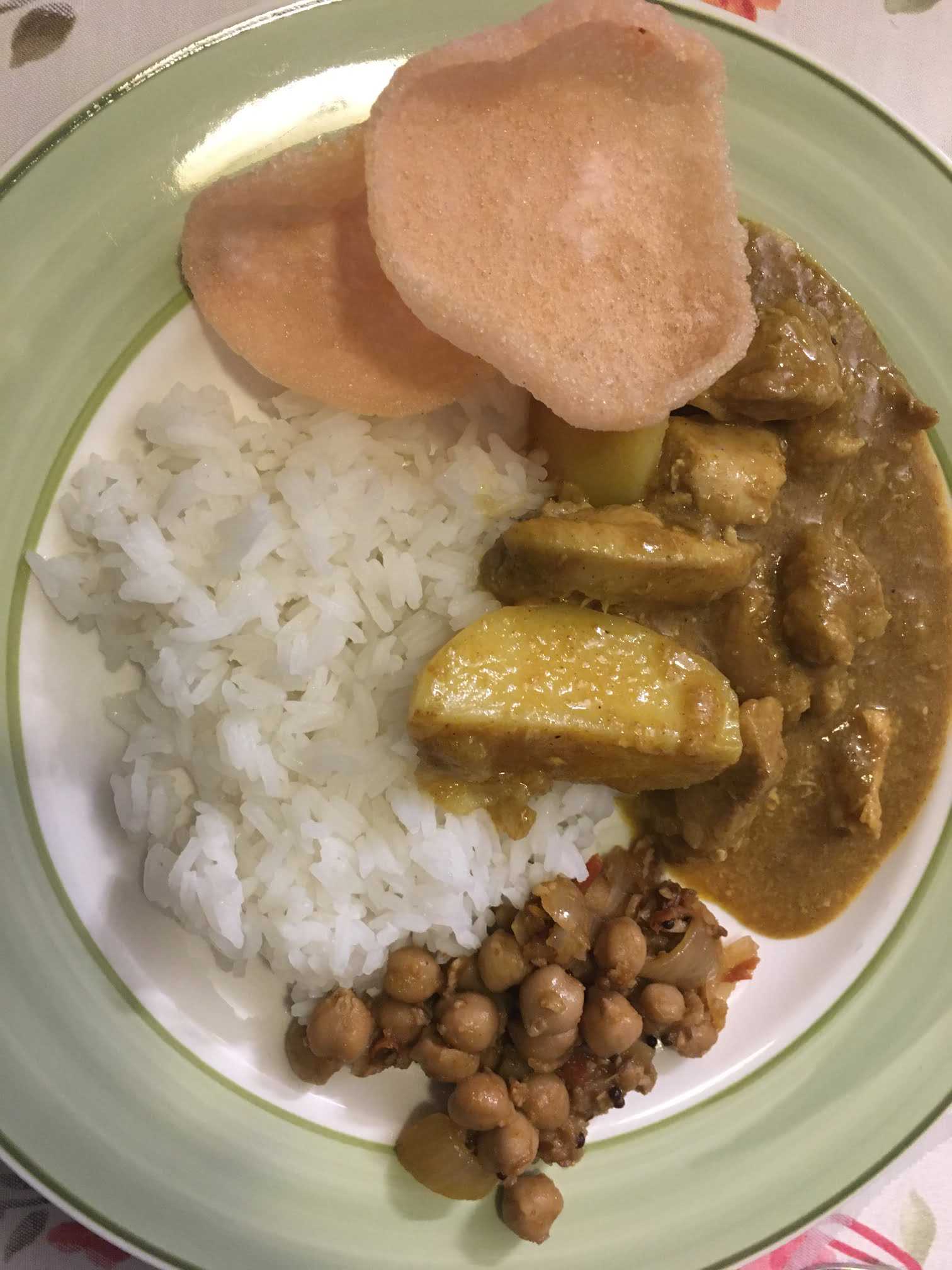 Da wir bisher noch nie unser Essen gepostet haben, schließe ich heute mit einem Foto von Juliettes köstlichem Chicken Curry.